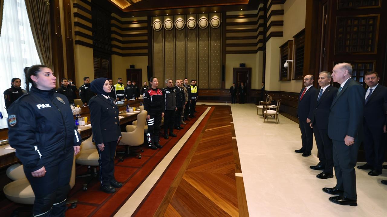 Cumhurbaşkanı Erdoğan, İçişleri Bakanı Ali Yerlikaya ve beraberindeki Türk Polis Teşkilatı heyetini, kabul etti.