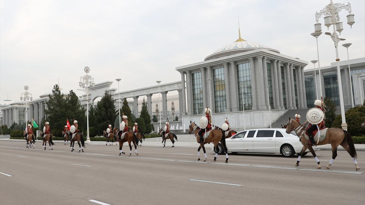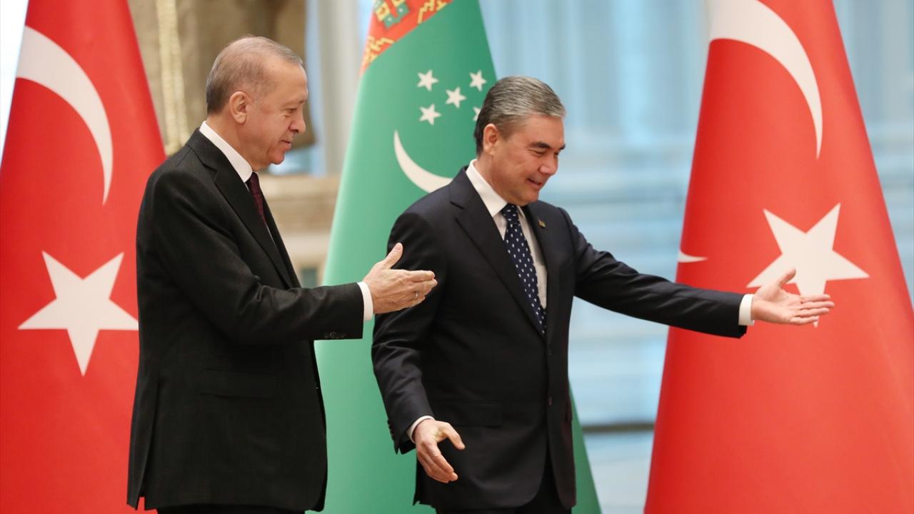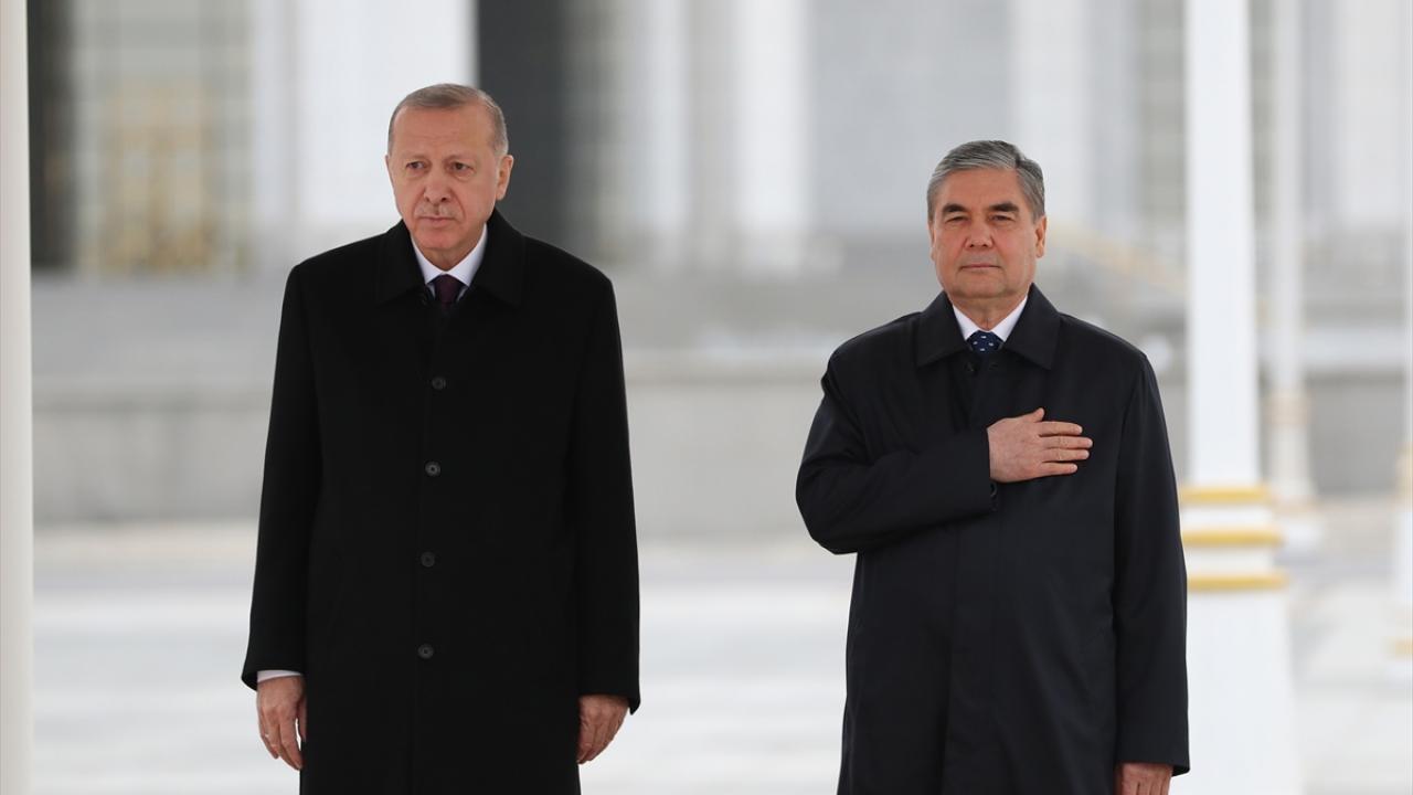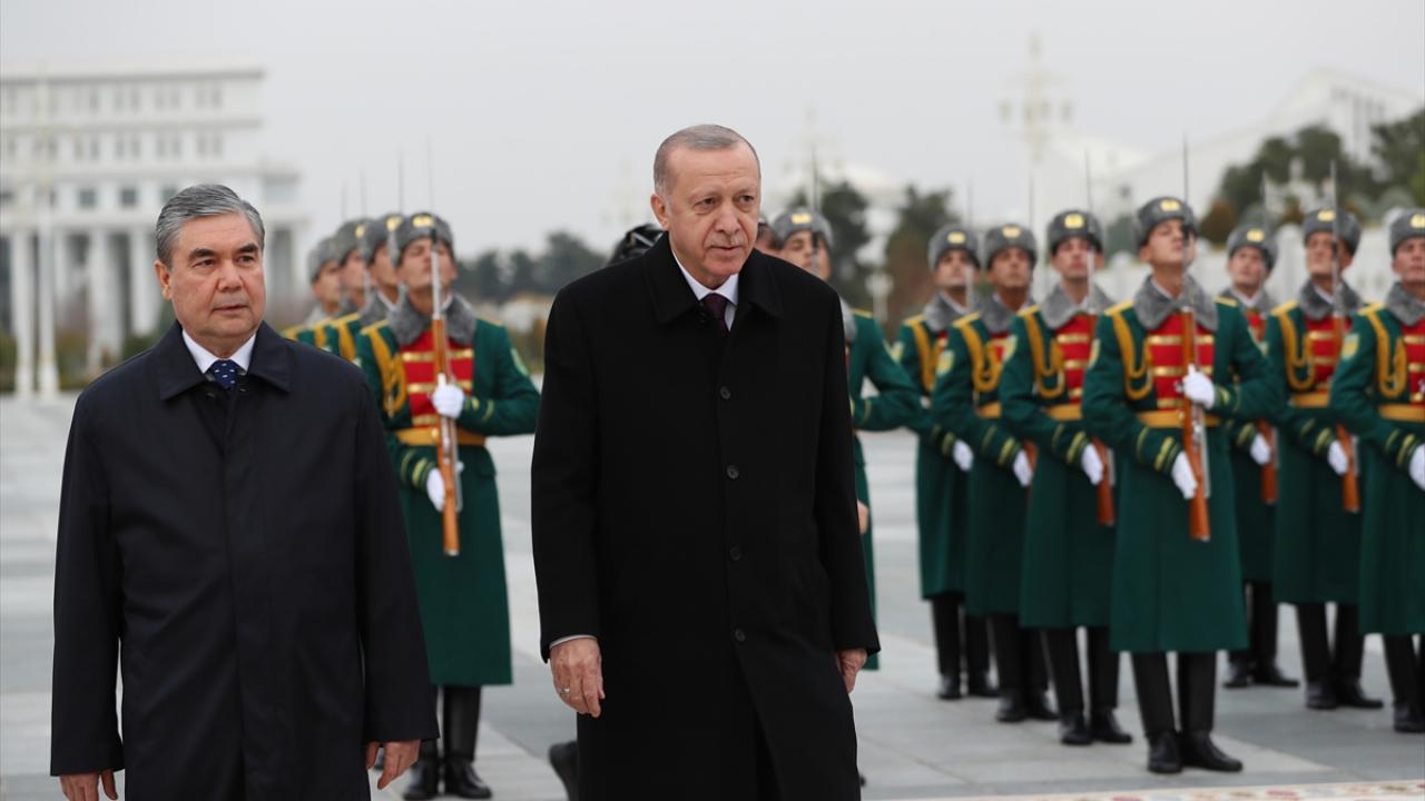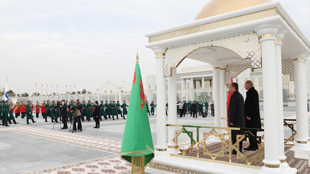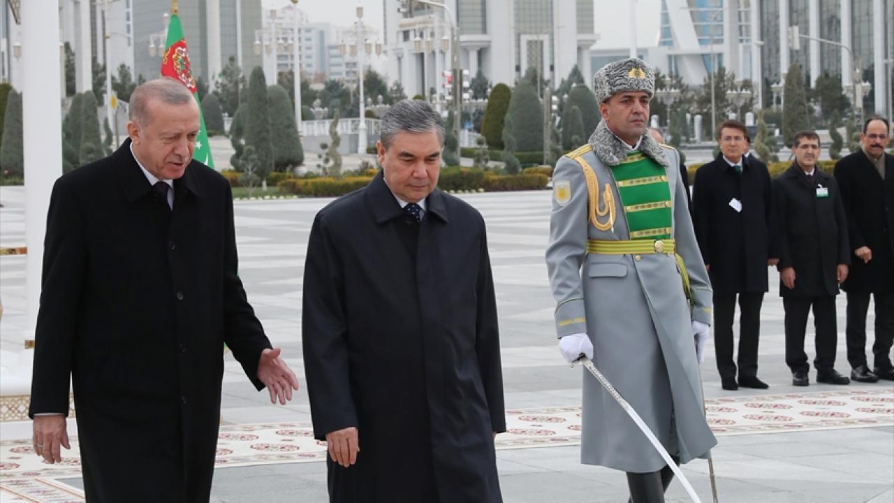 Cumhurbaşkanı Erdoğan, Türkmenistan Devlet Başkanı Gurbanguli Berdimuhammedov tarafından Oğuzhan Köşkü’nde resmi törenle karşılandı.