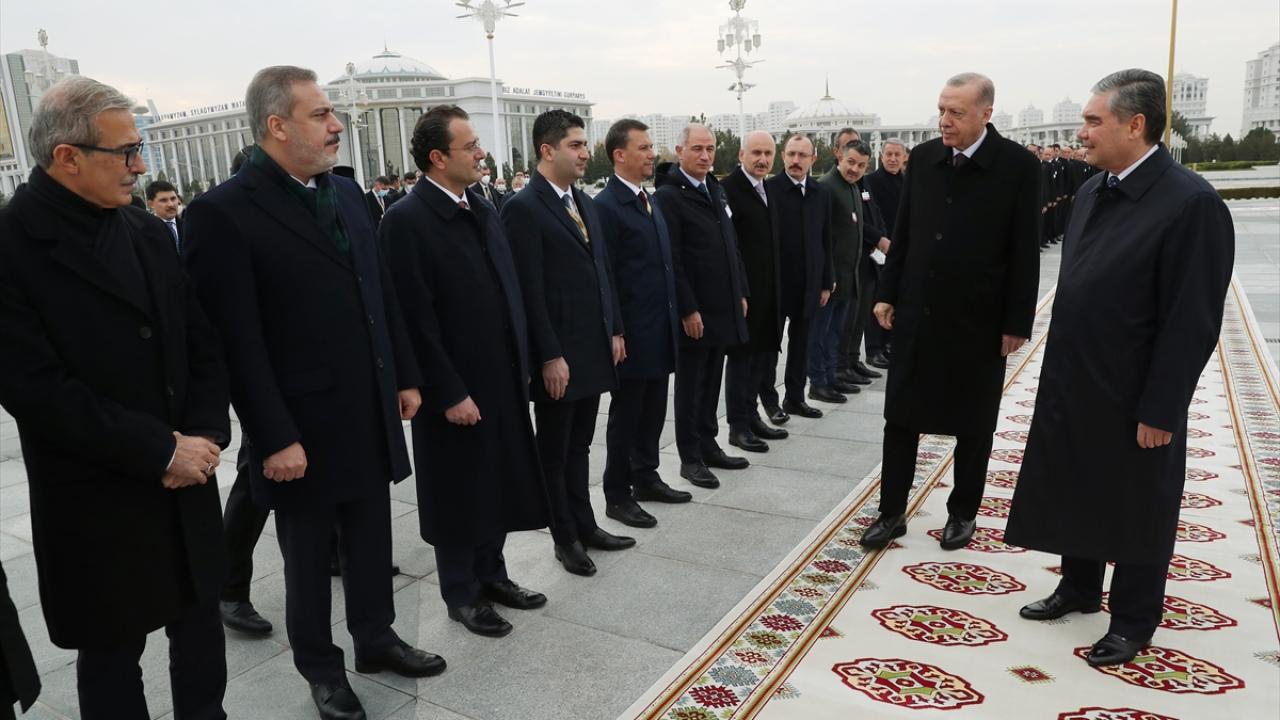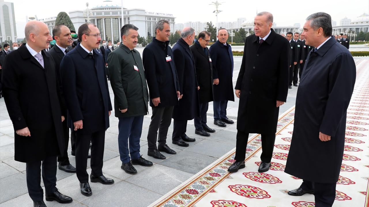 Cumhurbaşkanı Erdoğan ile eşi Emine Erdoğan, Enerji ve Tabii Kaynaklar Bakanı Fatih Dönmez, Milli Eğitim Bakanı Mahmut Özer, Milli Savunma Bakanı Hulusi Akar, Tarım ve Orman Bakanı Bekir Pakdemirli, Ticaret Bakanı Mehmet Muş, Ulaştırma ve Altyapı Bakanı Adil Karaismailoğlu, Cumhurbaşkanlığı İletişim Başkanı Fahrettin Altun ve Cumhurbaşkanlığı Sözcüsü İbrahim Kalın da Aşkabat`a gitti.