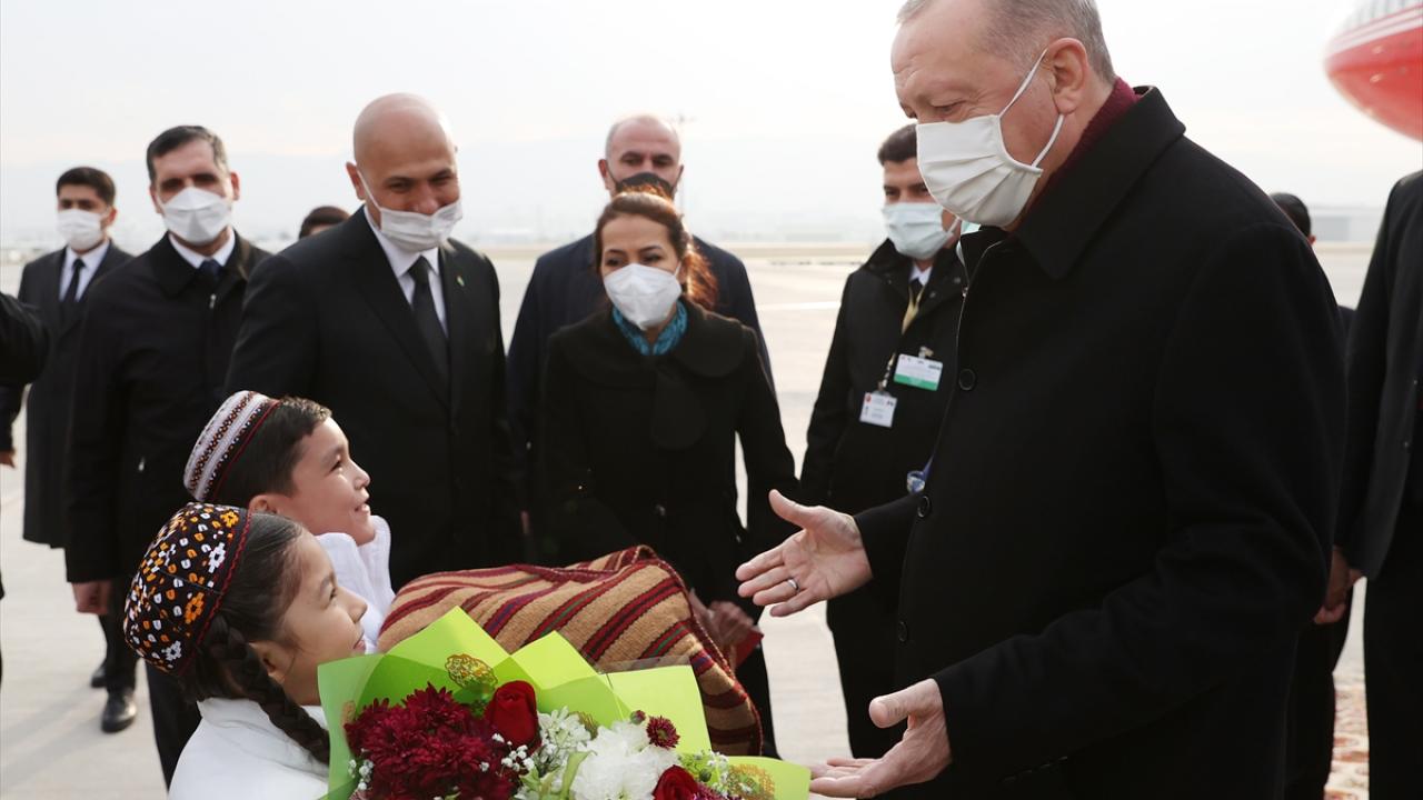 Cumhurbaşkanı Erdoğan, Aşkabat Uluslararası Havalimanı`nda Türkmenistan Bakanlar Kurulu Başkan Yardımcısı Çarı Gılıçov, Türkiye`nin Aşkabat Büyükelçisi Togan Oral ve büyükelçilik personeli tarafından karşılandı.