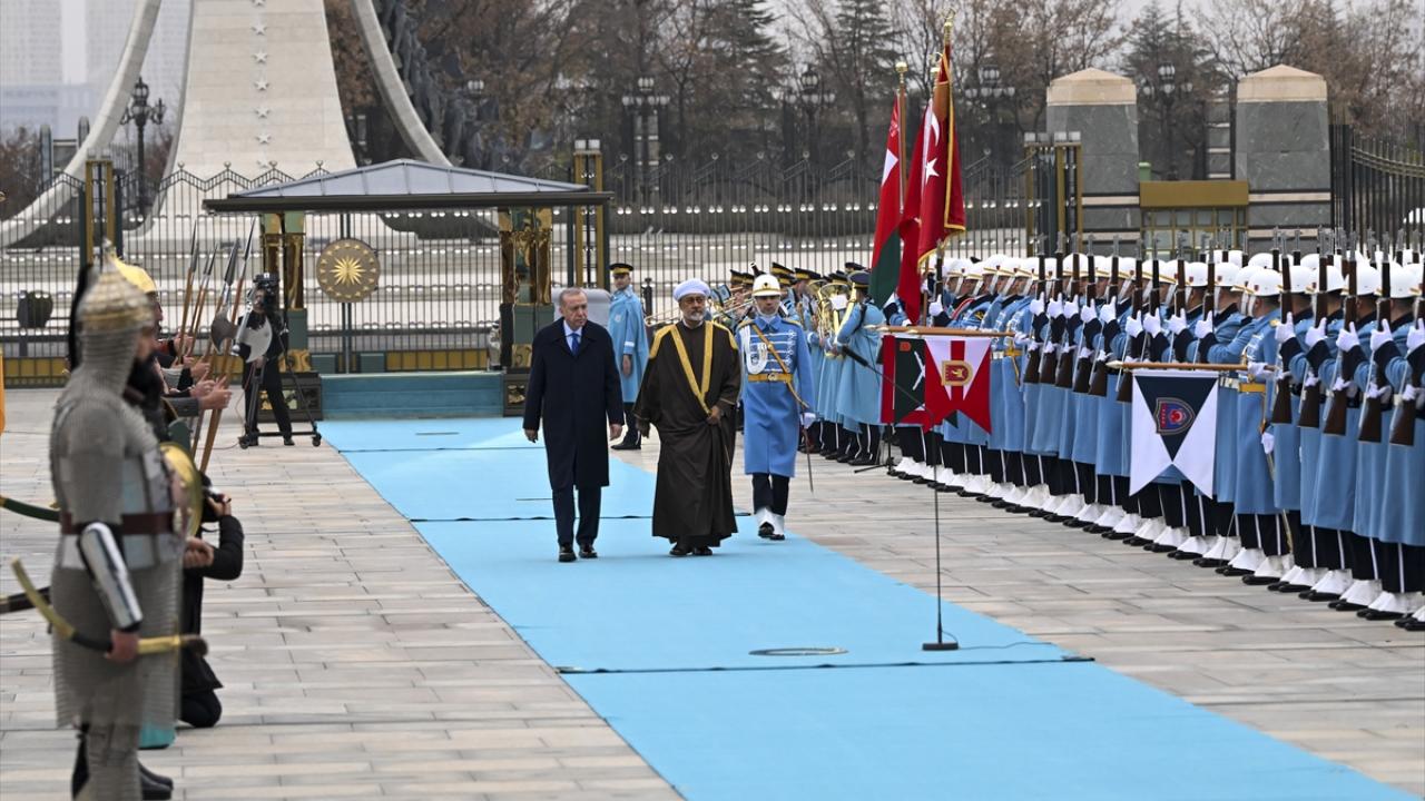 Heysem Bin Tarık, Muhafız Alayı Tören Kıtası`nı "Merhaba asker" diyerek selamladı. Törende, tarihte kurulan 16 Türk devletini temsil eden bayraklar ve askerlere de yer verildi, 21 pare top atışı yapıldı.