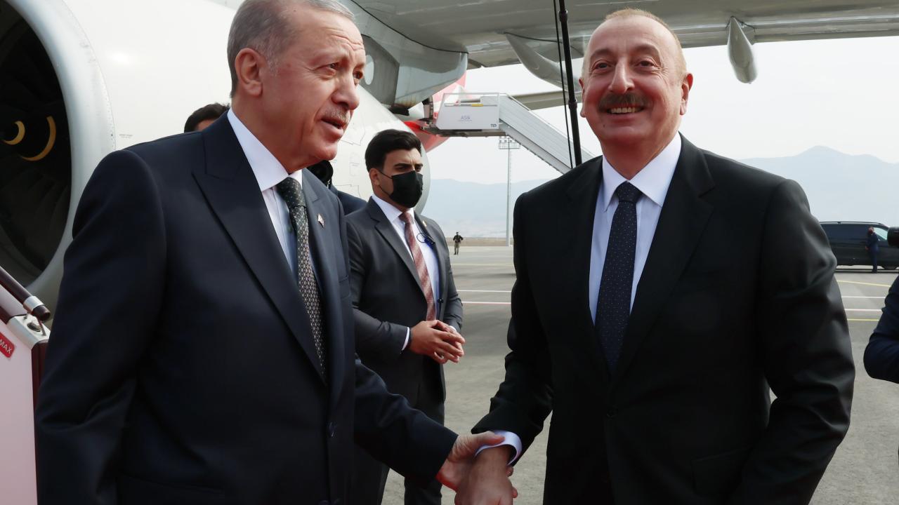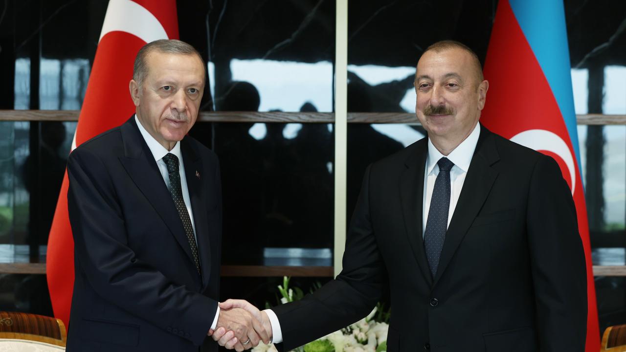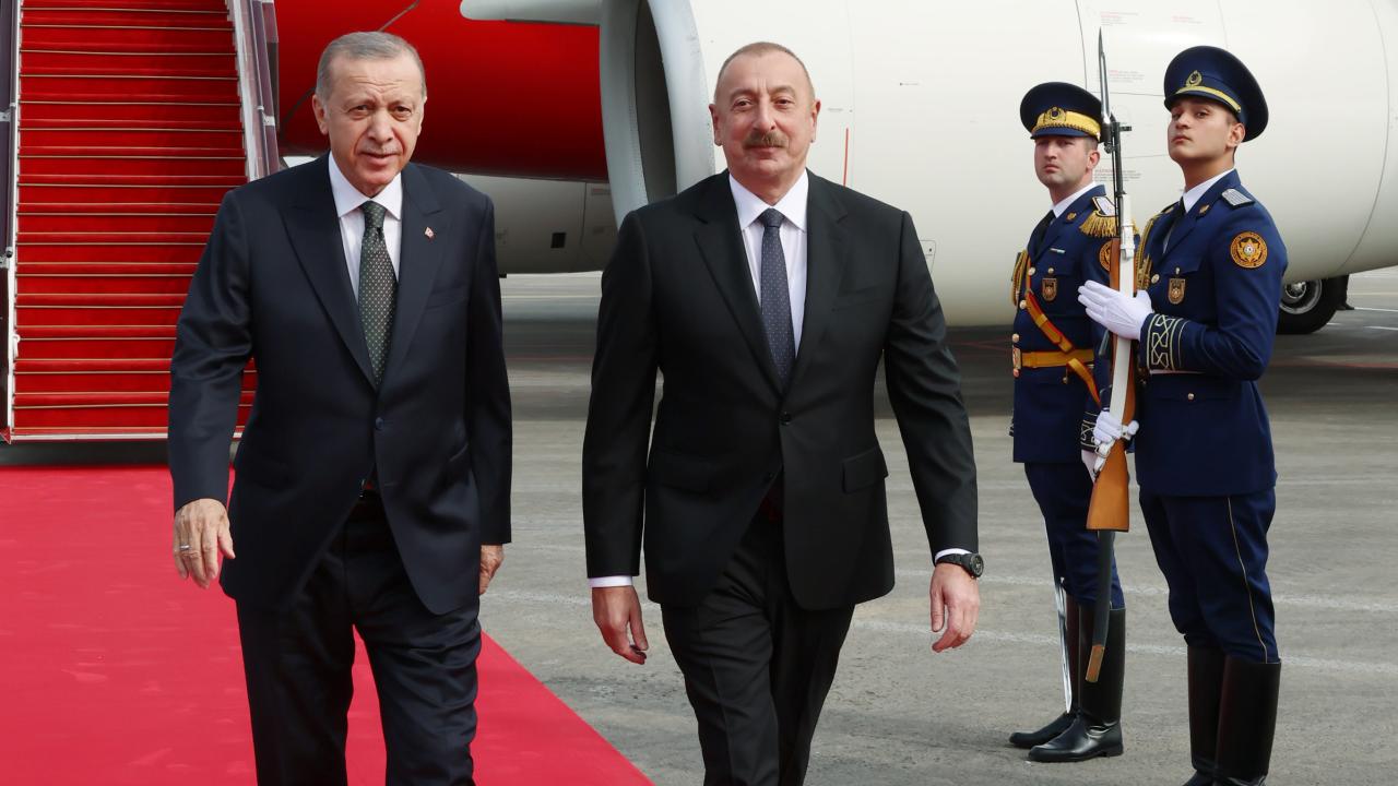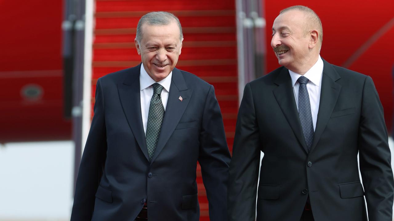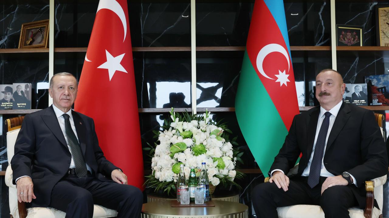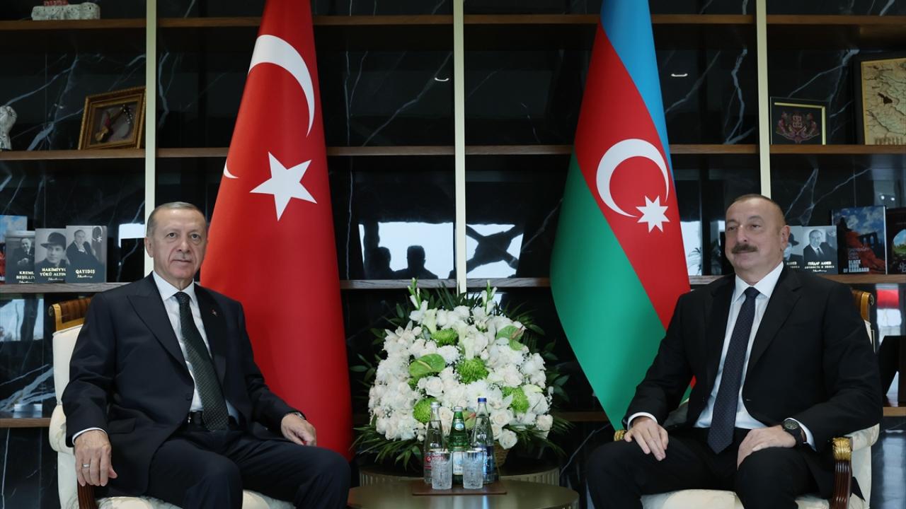 Azerbaycan Cumhurbaşkanı İlham Aliyev tarafından karşılanan Erdoğan, daha sonra baş başa görüştü.