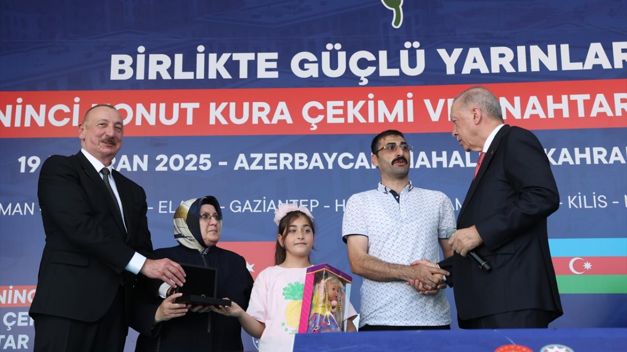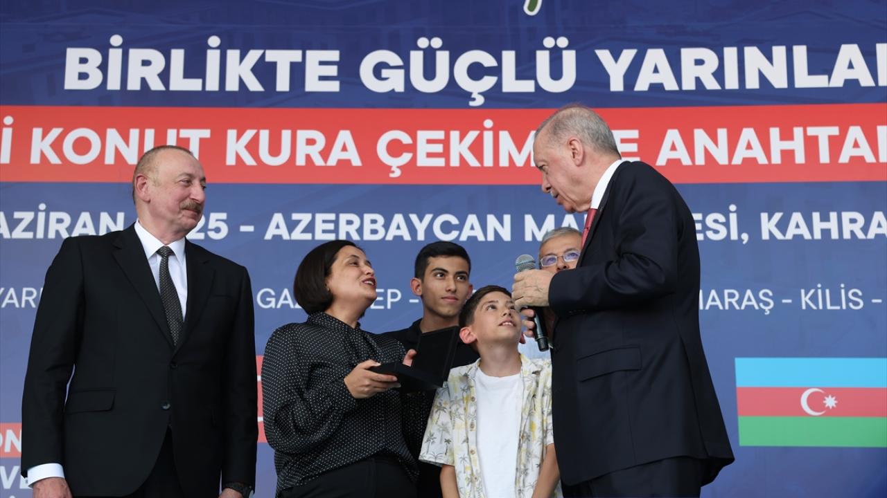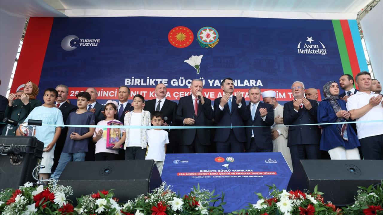 Cumhurbaşkanı Recep Tayyip Erdoğan ve Azerbaycan Cumhurbaşkanı İlham Aliyev, Kahramanmaraş'taki Azerbaycan Mahallesi'nde '250 Bininci Afet Konutu Anahtar Teslimi ve Kura Çekim Töreni'ne katıldı.