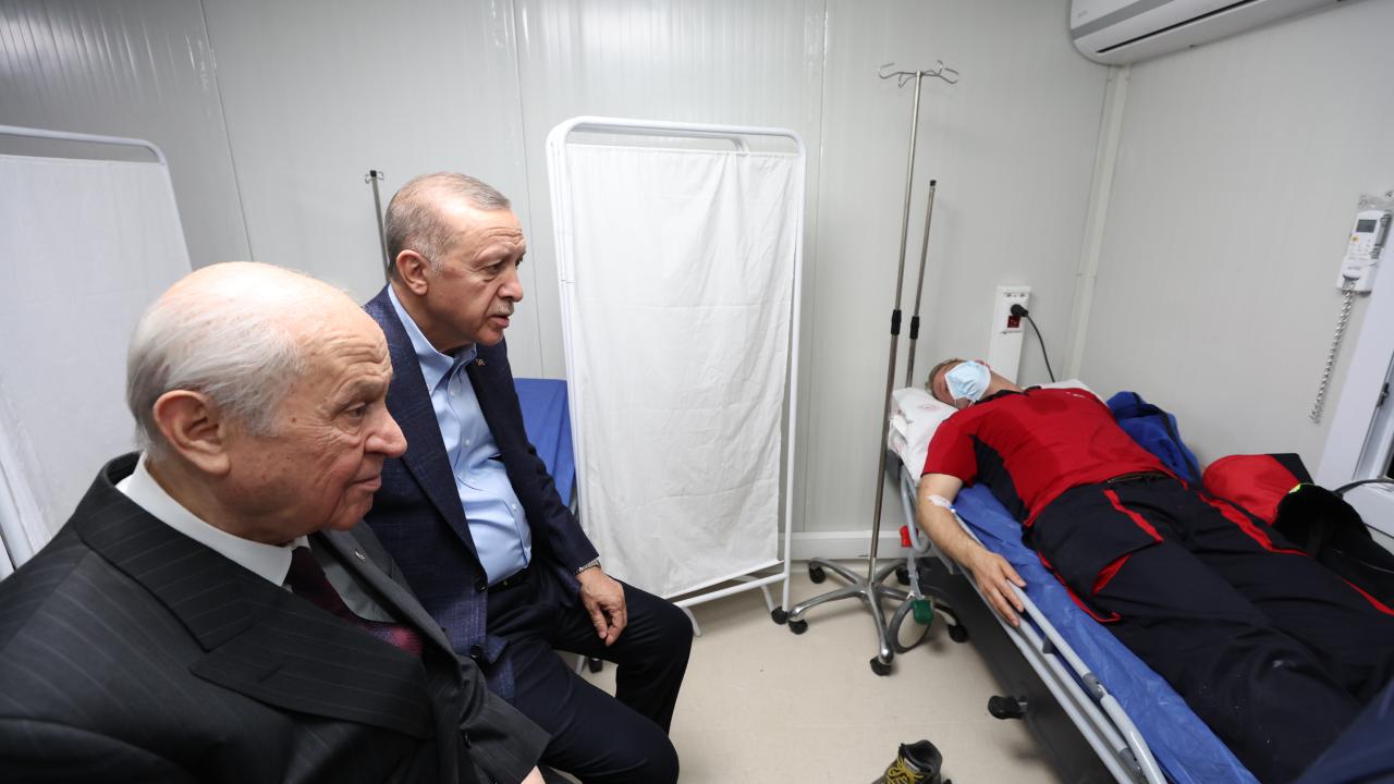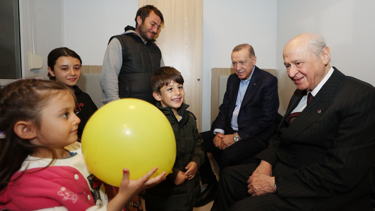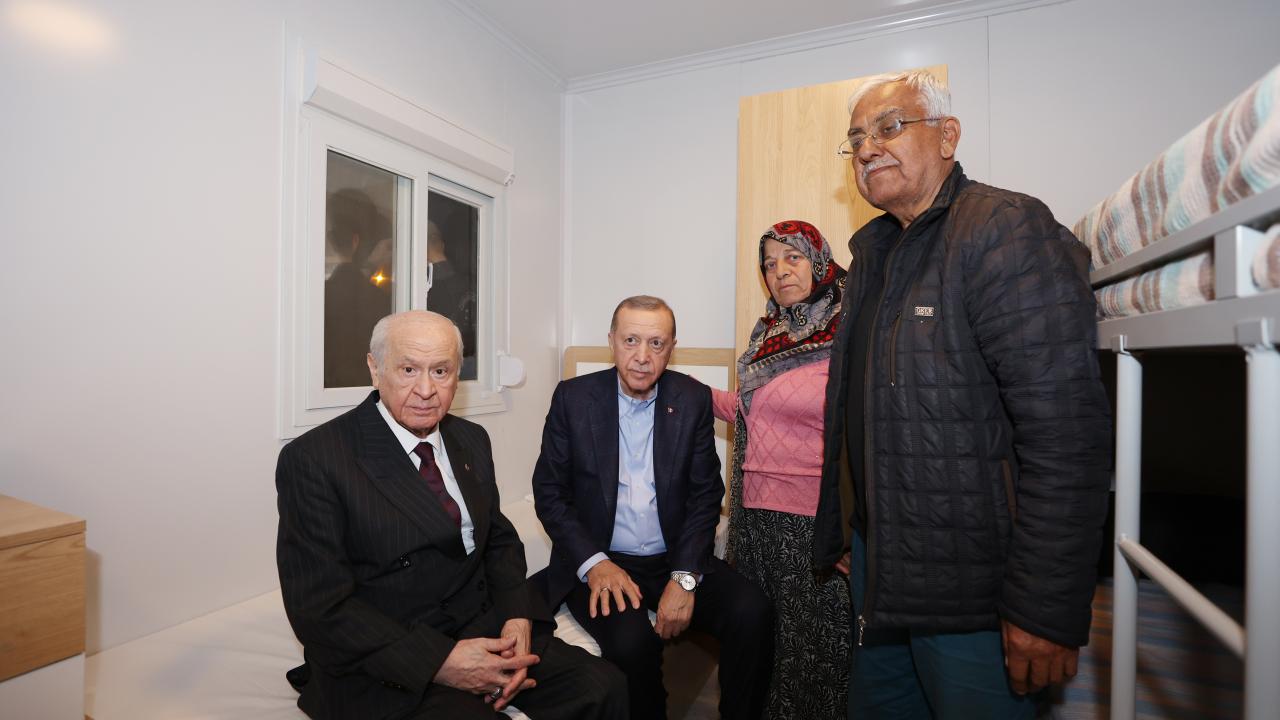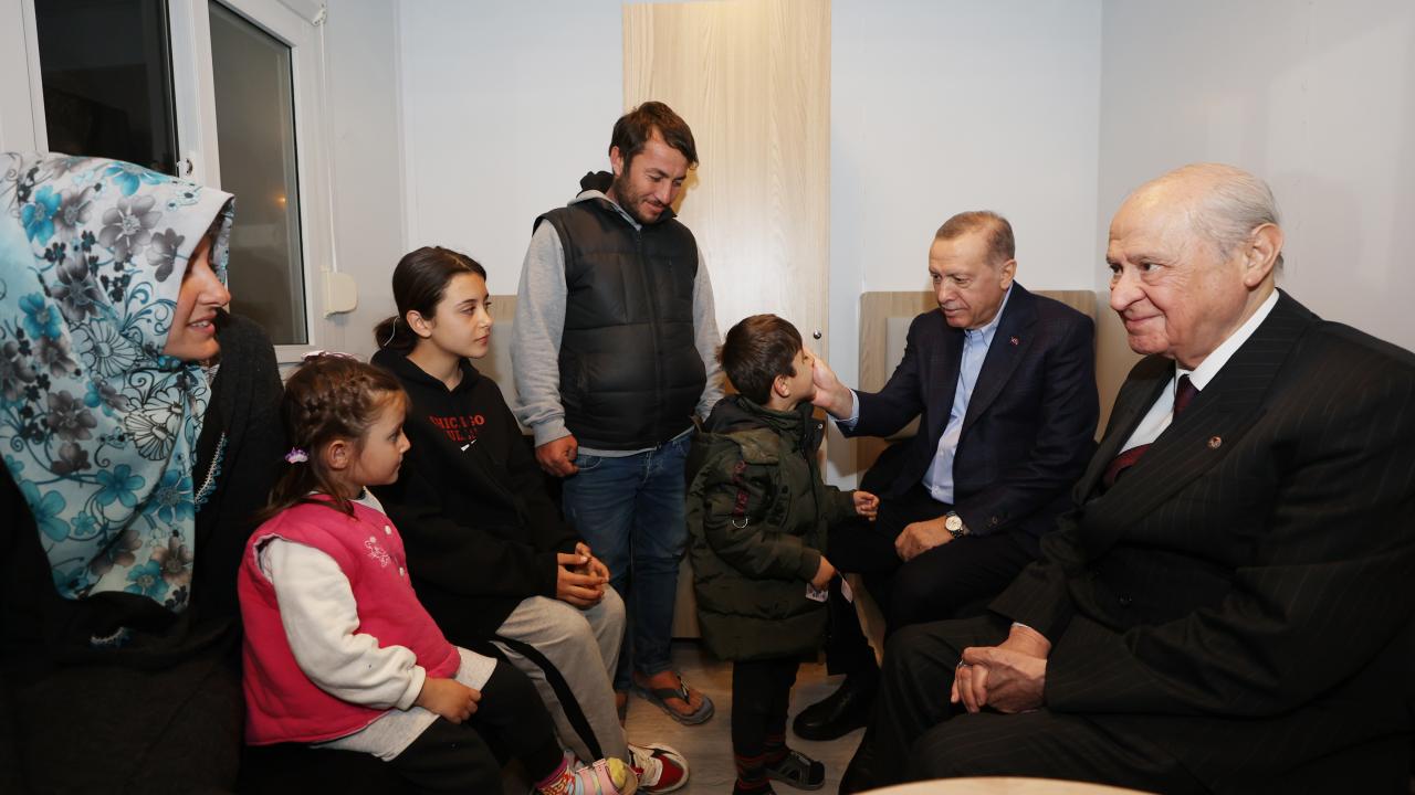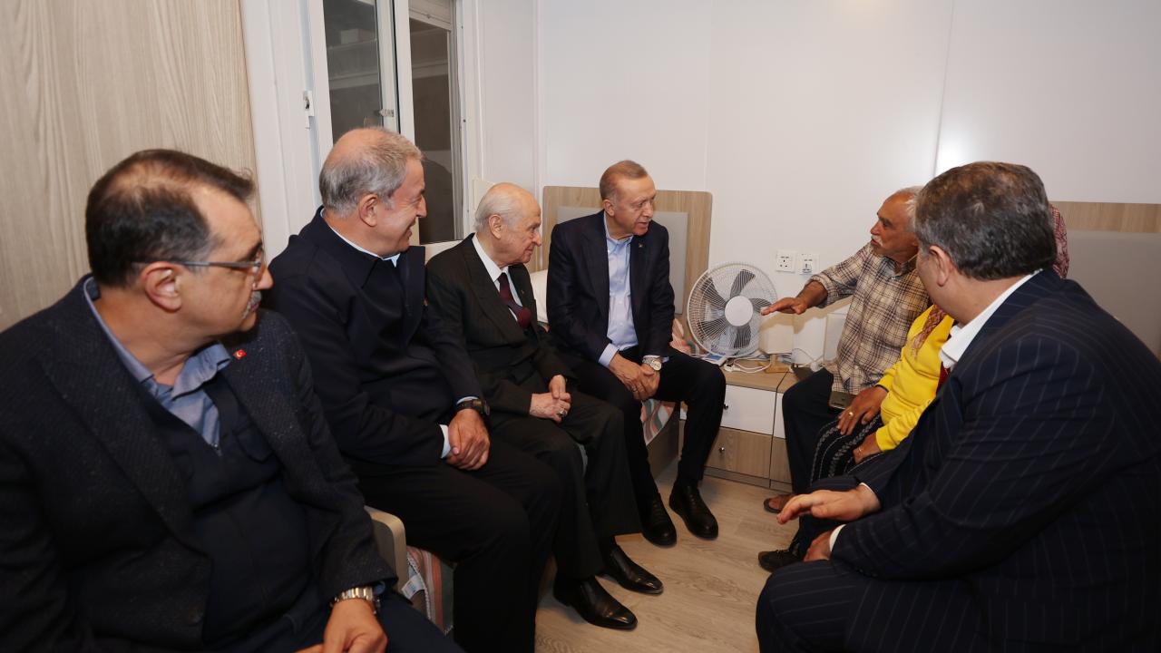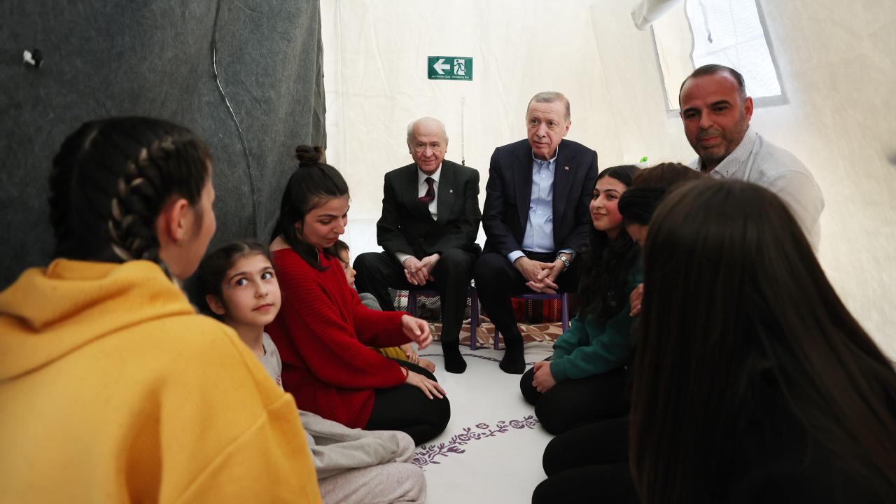 Cumhurbaşkanı Erdoğan ve Bahçeli depremzedelerle bir araya geldi
