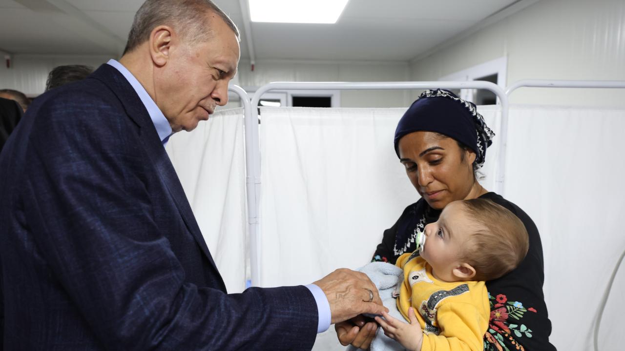 Erdoğan, Defne ilçesinde konteynerlerden oluşan sahra hastanesini ziyaret etti. Tedavi gören vatandaşlara geçmiş olsun dileklerini ileten Erdoğan, çalışmalara ilişkin doktorlar ve Sağlık Bakanı Fahrettin Koca`dan bilgi aldı.