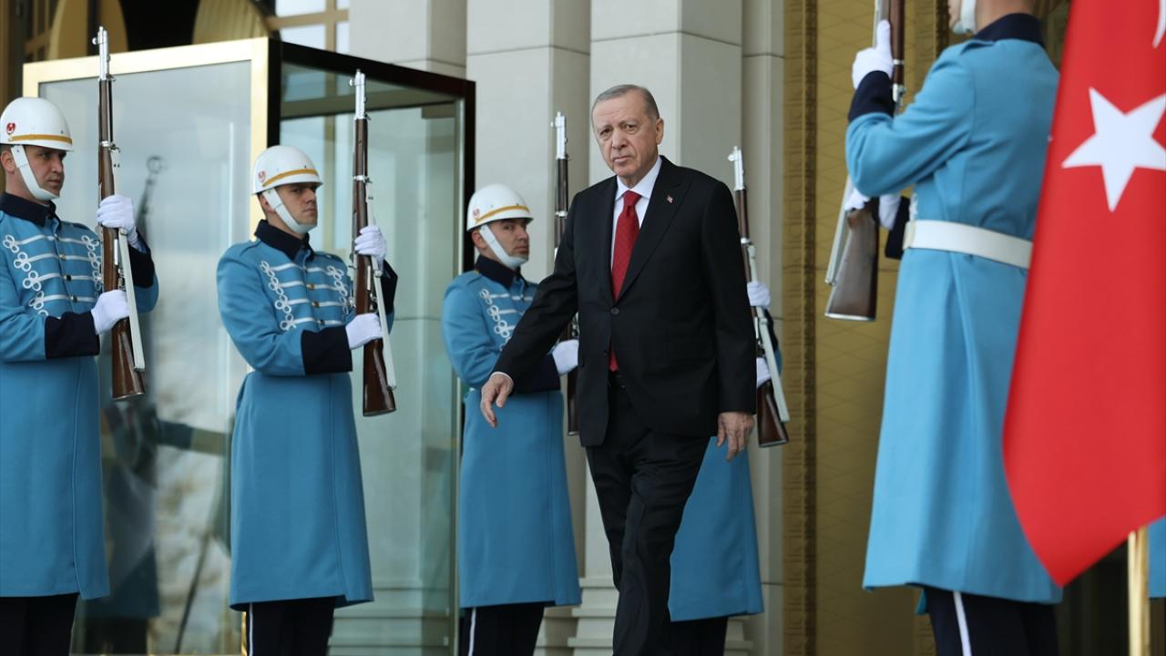 Cumhurbaşkanı Recep Tayyip Erdoğan, Macaristan Başbakanı Orban`ı, Cumhurbaşkanlığı Külliyesi`ne gelişinde giriş kapısında karşıladı.