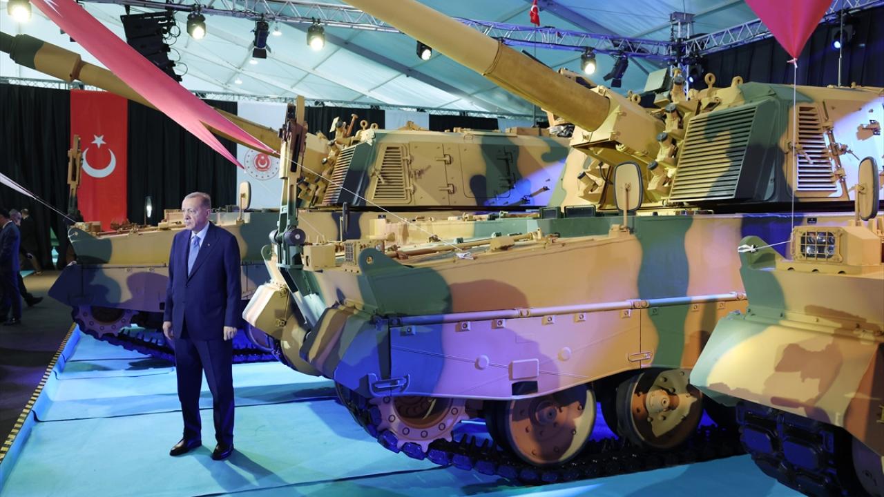 Cumhurbaşkanı Erdoğan, burada fırtına obüslerini inceledi.