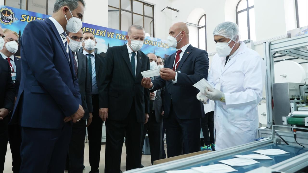 Özel sektörümüzün ve sanayicilerimizin de katkısını alarak mesleki eğitimde, eğitim-üretim-istihdam çevrimini güçlendiriyoruz. Bu amaçla yeni projeleri hayata geçirmeye başladık. 2020 yılının ekim ayında başlatılan mesleki eğitimde 1000 okul projesi, mesleki eğitimde gerçekleştirilen iyileşmenin, tüm mesleki ve Teknik Anadolu Liselerine yaygınlaştırılması yönünde attığımız önemli adımdır. Proje kapsamında belirlenen 1000 mesleki ve Teknik Anadolu Lisesine bir yıldan daha az sürede toplam 1 milyar liralık altyapı ve eğitim desteği sağlanmıştır. Sağ olsun İstanbul`da valimiz dahil çok ciddi bir gayretle okullarımızın bu noktada adedini artırmak suretiyle buradaki Teknik Anadolu Meslek Liselerinin sayısının artması bizim öğrencilerimizin sayısal olarak da daha düşük sayıda sınıflarda yer almalarını sağlayacak ve böylece sizlerin üniversiteler girmek, üniversitelere girmekten öte süratle oralardan mezun olarak inşallah hayatınızı çok daha zengin kılacaktır.