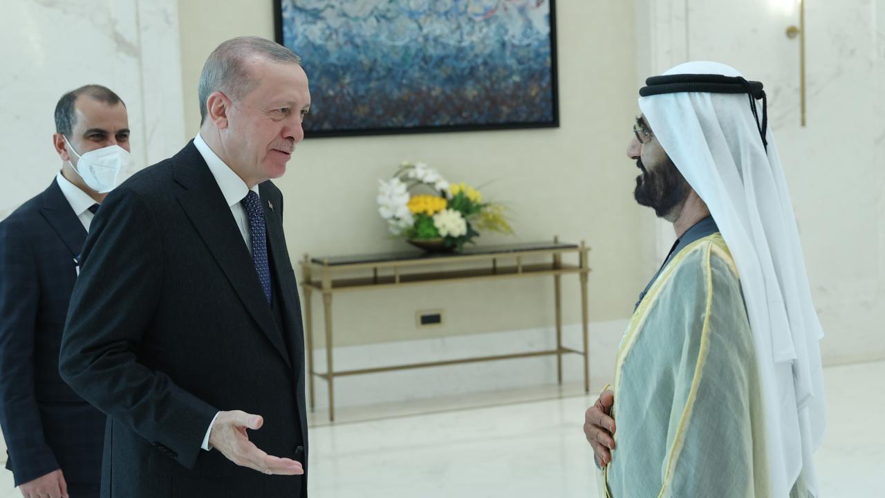 Erdoğan, Dubai Expo 2020`deki liderlik sergi alanında, Birleşik Arap Emirlikleri Devlet Başkan Yardımcısı, Başbakan ve Dubai Emiri Şeyh Muhammed Bin Raşid Al Maktum ile bir araya geldi. Erdoğan ve Al Maktum, heyetler arası görüşmeye başkanlık etti.