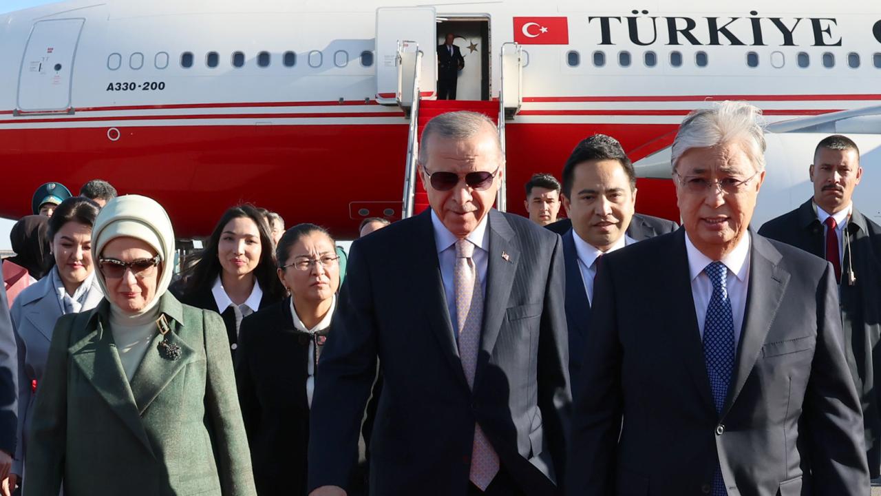 Asya`da İşbirliği ve Güven Artırıcı Önlemler Konferansı`na katılması beklenen Erdoğan’ı Nursultan Nazarbayev Uluslararası Havalimanı’nda Kazakistan Cumhurbaşkanı Kasım Cömert Tokayev karşıladı.