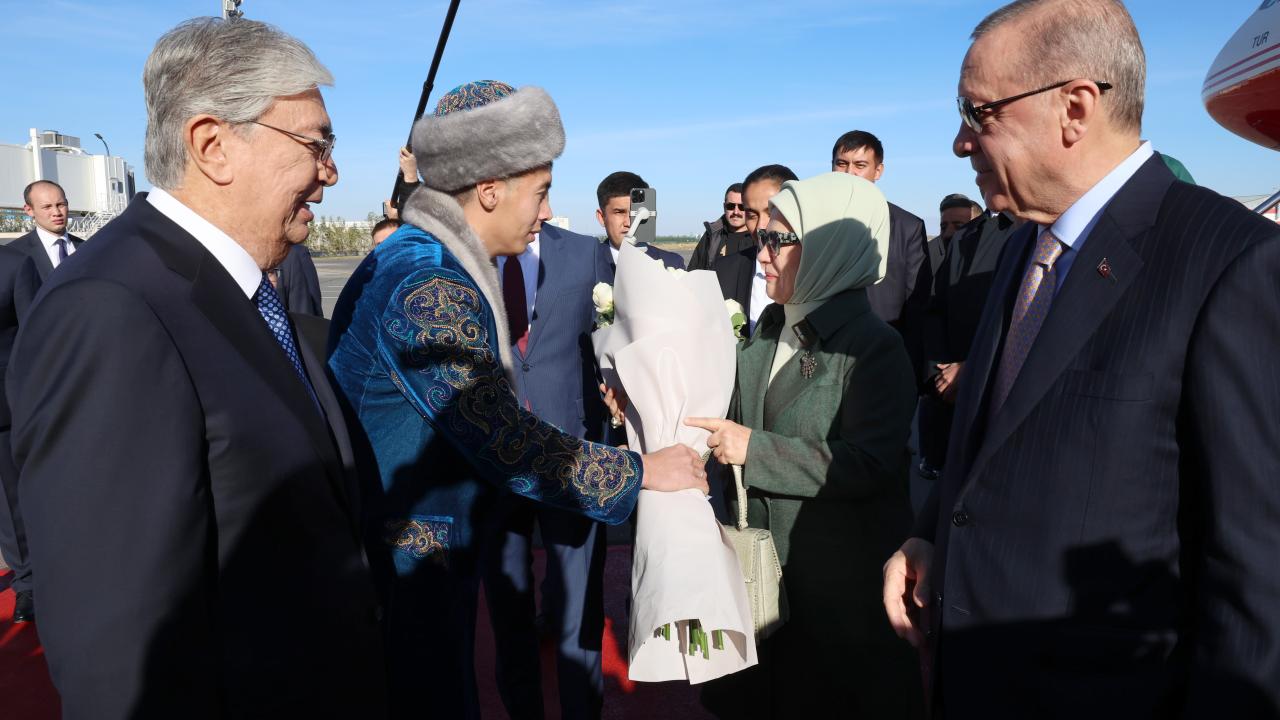 Erdoğan ve Tokayev havalimanından sonra Akorda Devlet Başkanlığı Sarayı`na geçti.