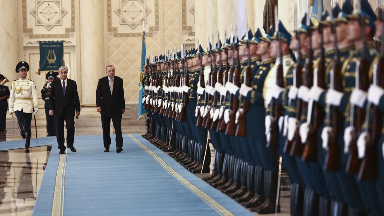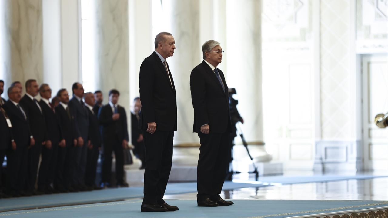 Erdoğan`a burada da resmi karşılama töreni düzenlendi. Törenin ardından Erdoğan ve Tokayev, daha sonra baş başa ve heyetler arası görüşmeye geçti.