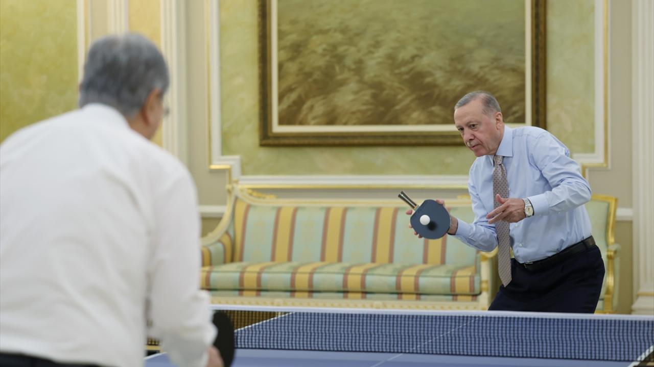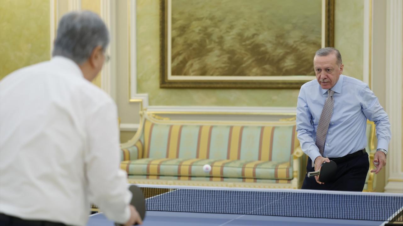 Görüşmeler sonrası Cumhurbaşkanı Erdoğan, Kazakistan Cumhurbaşkanı Tokayev ile masa tenisi oynadı.