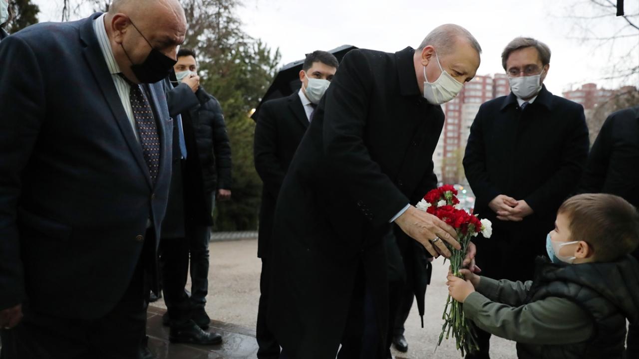 Cumhurbaşkanı Erdoğan, vefatının 24`üncü yılı dolayısıyla Türkeş`e dua etmek için mezarını ziyaret eden bir çocukla da bir süre sohbet etti.