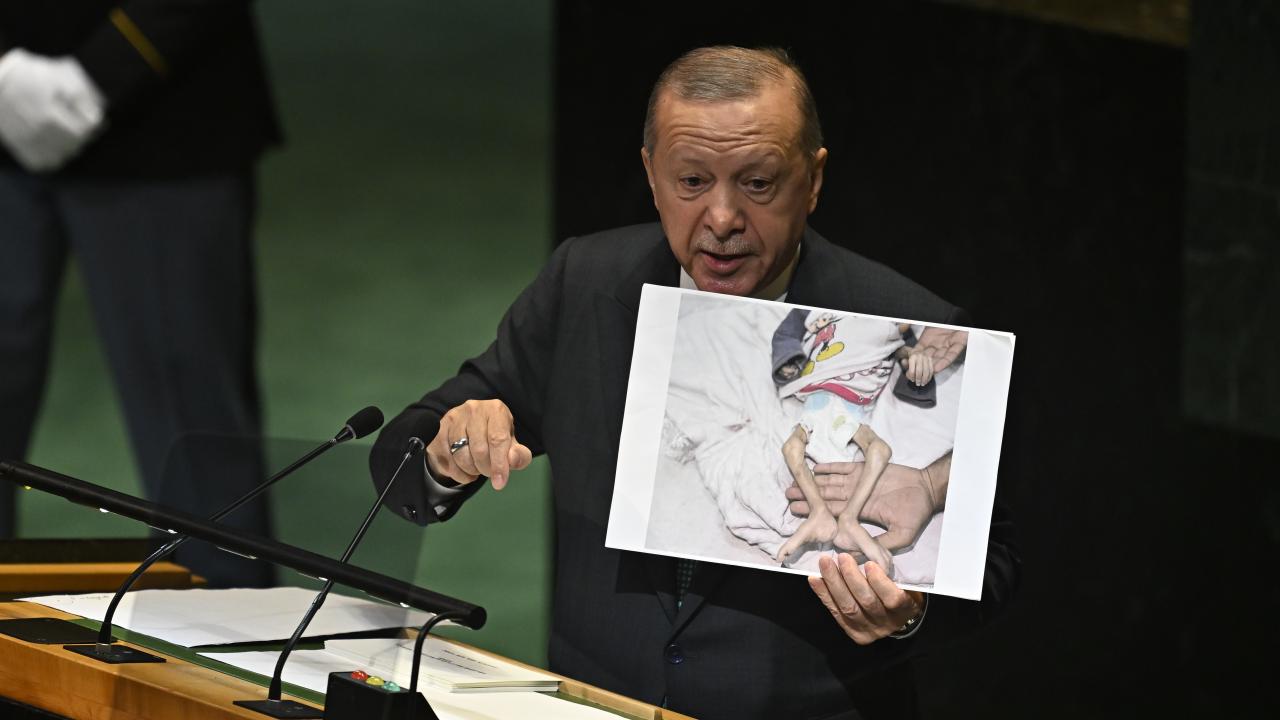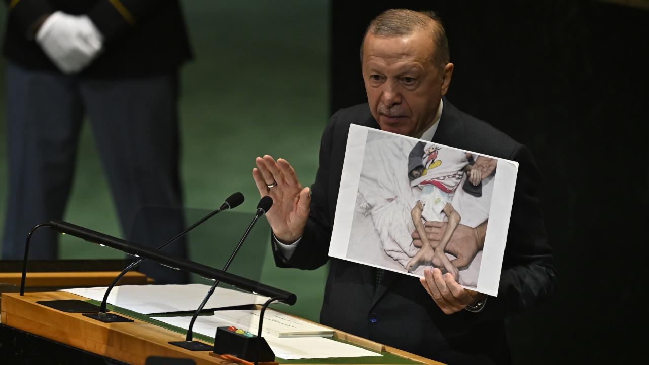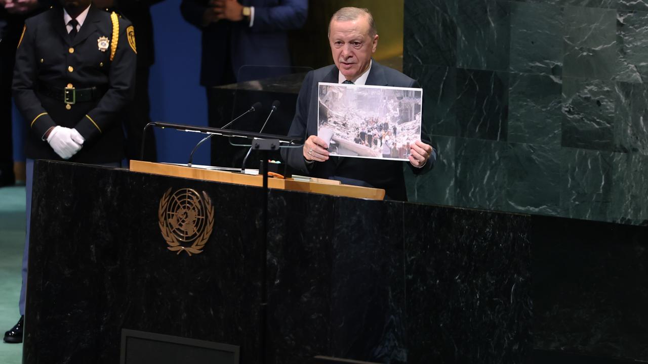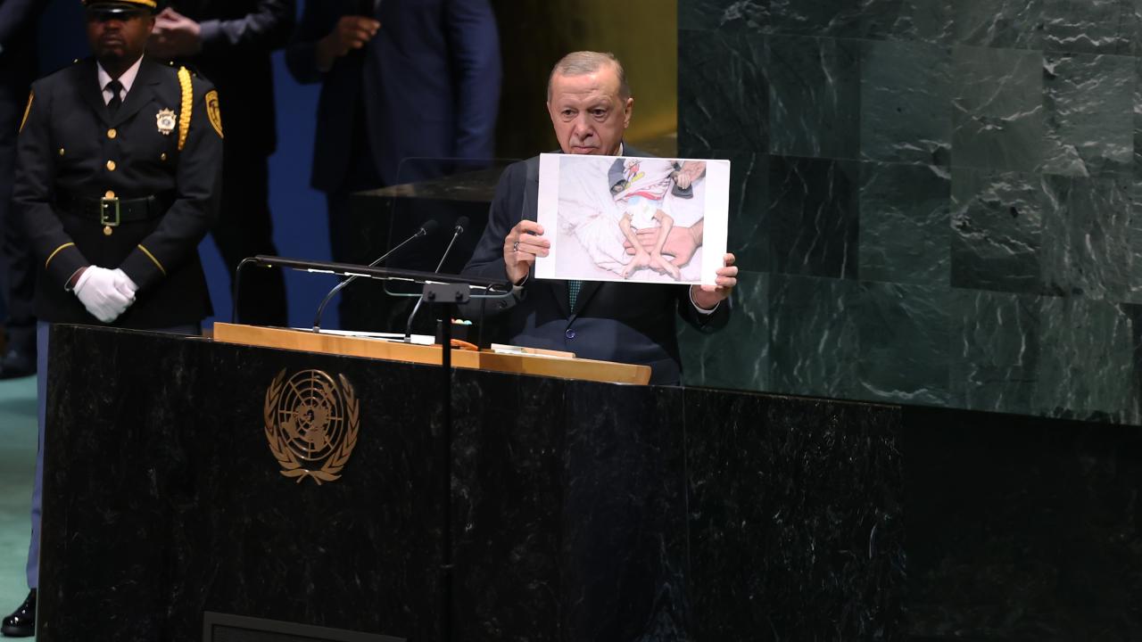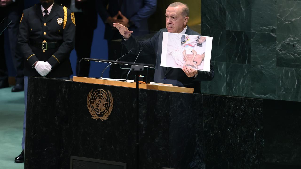 Cumhurbaşkanı Recep Tayyip Erdoğan, Birleşmiş Milletler (BM) 80. Genel Kurulu'na katılarak konuşma yaptı. Erdoğan, buradaki konuşmasında Gazze'de çekilen fotoğrafları gösterdi.