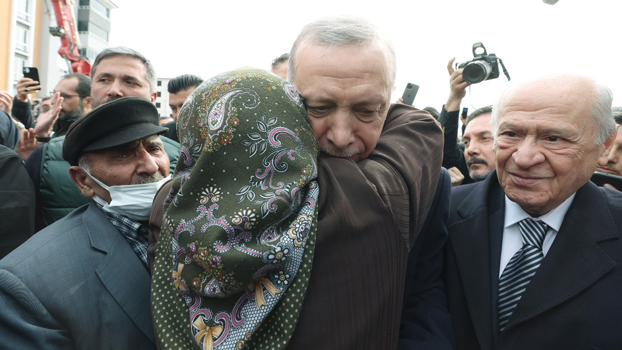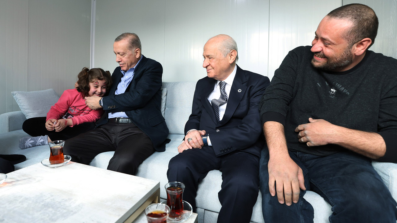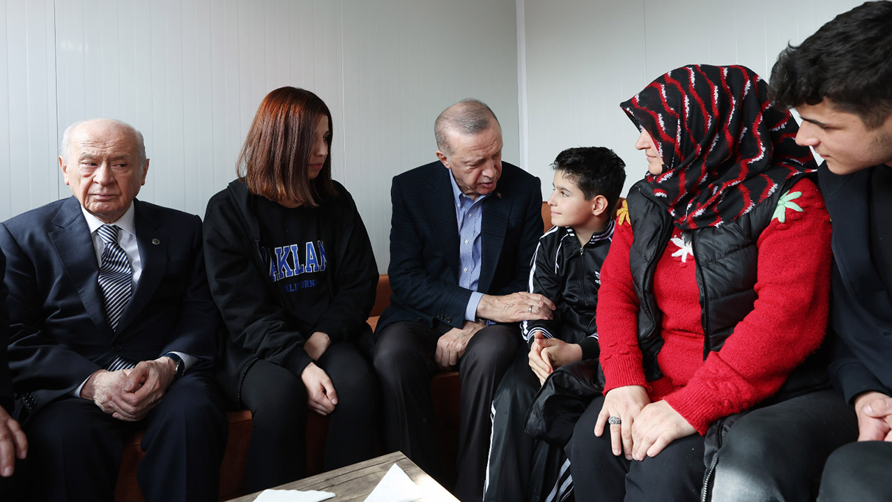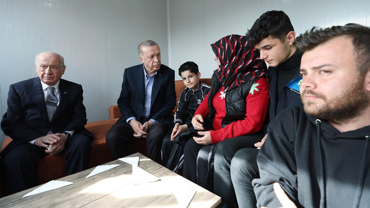 Cumhurbaşkanı Recep Tayyip Erdoğan, incelemelerde bulunmak üzere gittiği Kahramanmaraş'ın Elbistan ilçesinde, konteyner evleri ziyaret ederek depremzedelerle bir araya geldi.