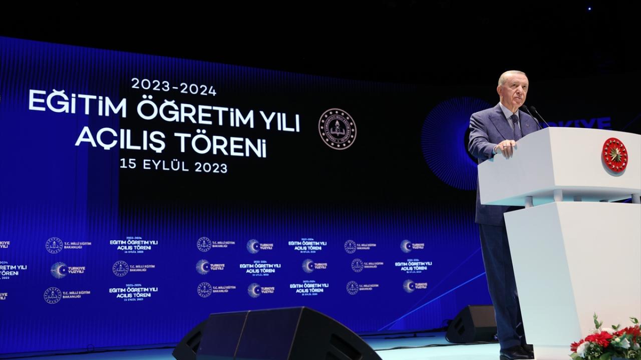 Cumhurbaşkanı Recep Tayyip Erdoğan, Atatürk Kültür Merkezi`nde 2023-2024 Eğitim Öğretim Yılı Açılış Töreni`nde konuşuyor.
