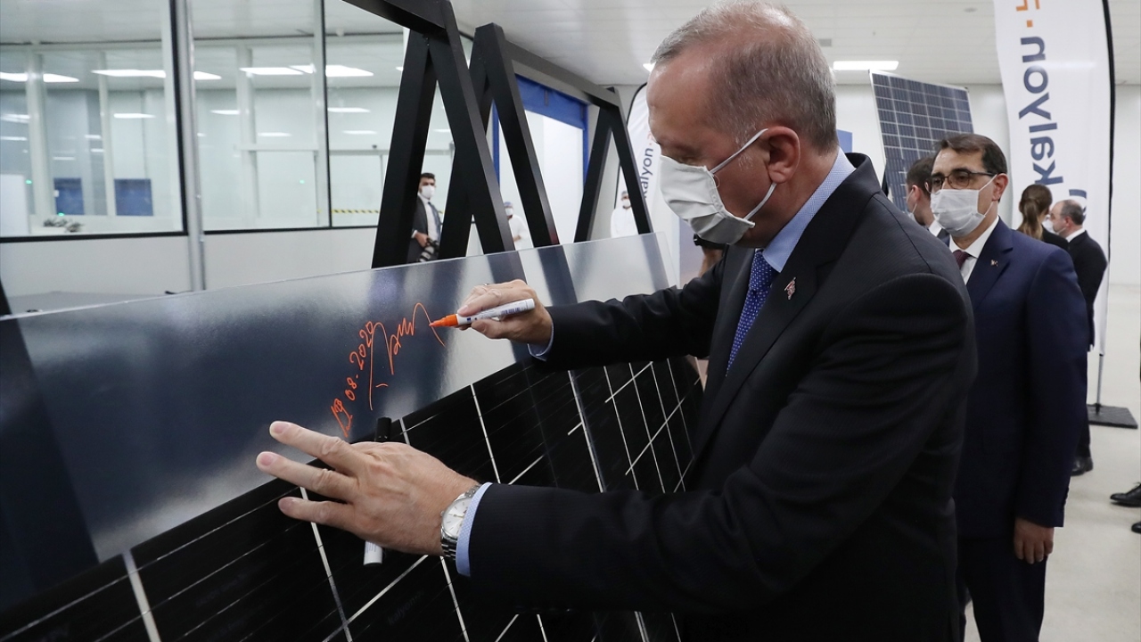 Türkiye Cumhurbaşkanı Recep Tayyip Erdoğan, Başkent Organize Sanayi Bölgesi'ndeki Kalyon Güneş Teknolojileri Fabrikası Açılış Töreni'ne katıldı.