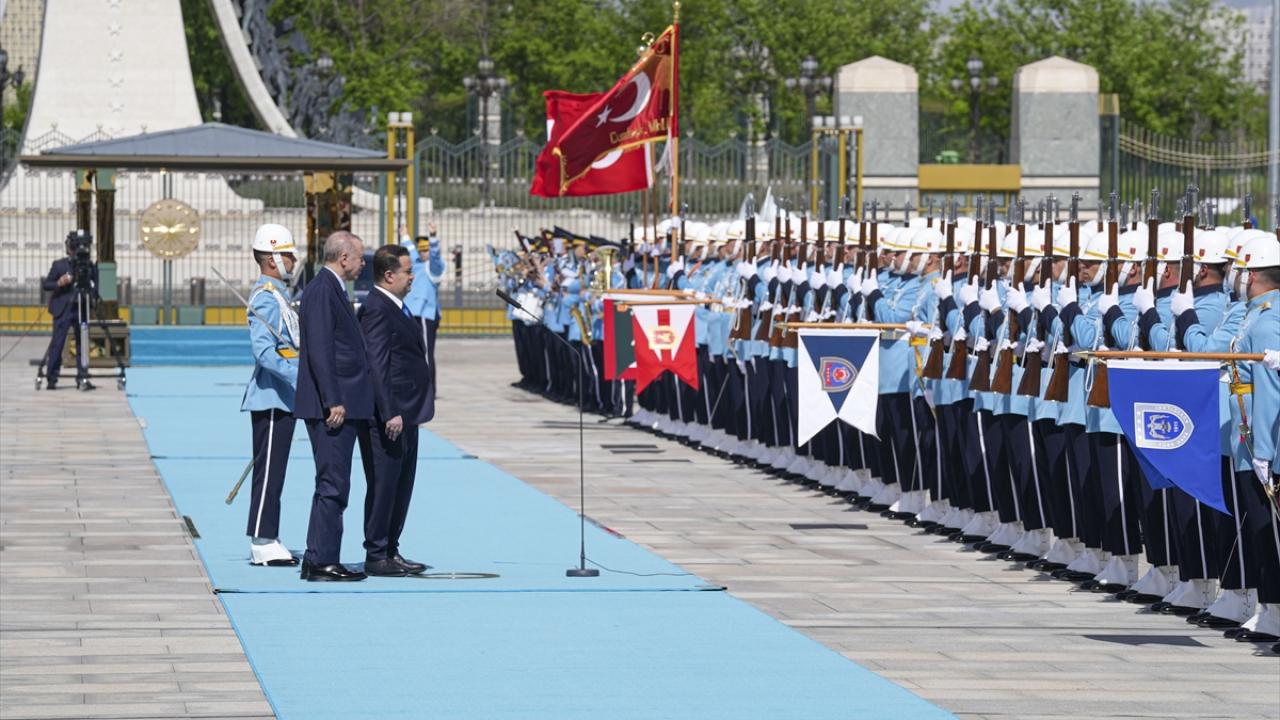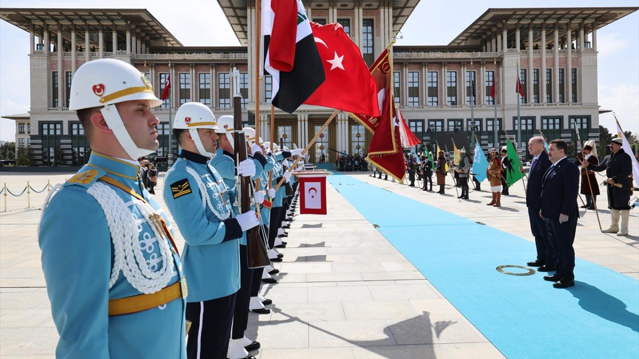 Sudani, Muhafız Alayı Tören Kıtası`nı "Merhaba asker" diyerek selamladı. Törende, tarihte kurulan 16 Türk devletini temsil eden bayraklar ile askerlere de yer verildi, top atışı yapıldı.