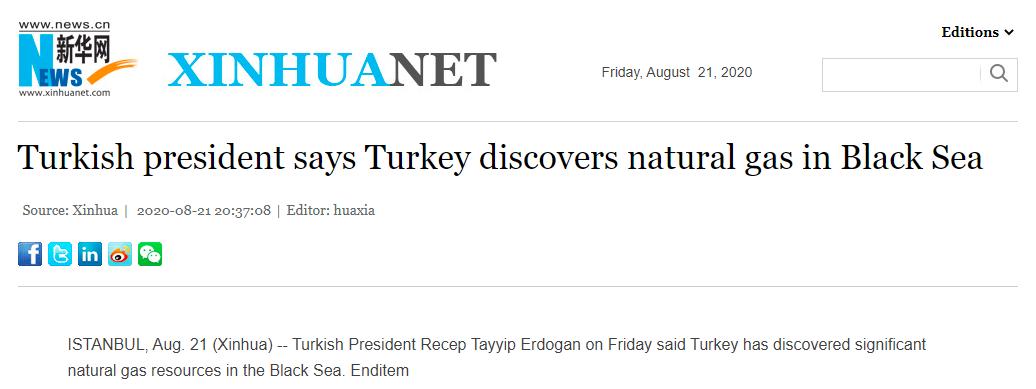 Çin merkezli haber ajansı Şinhua okuyucularına Türkiye`nin bulduğu gaz rezervini okuyucularına son dakika duyurdu.