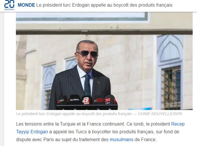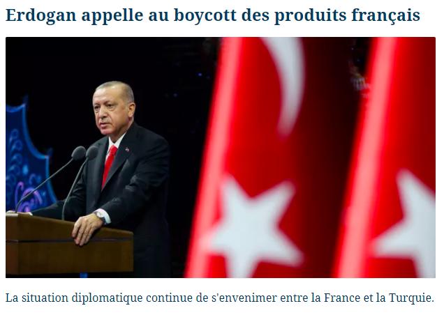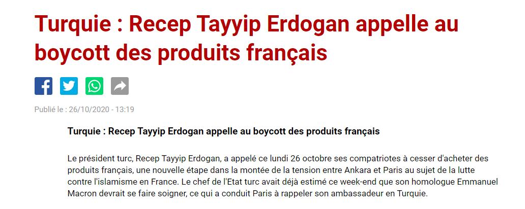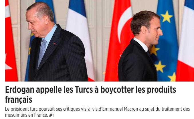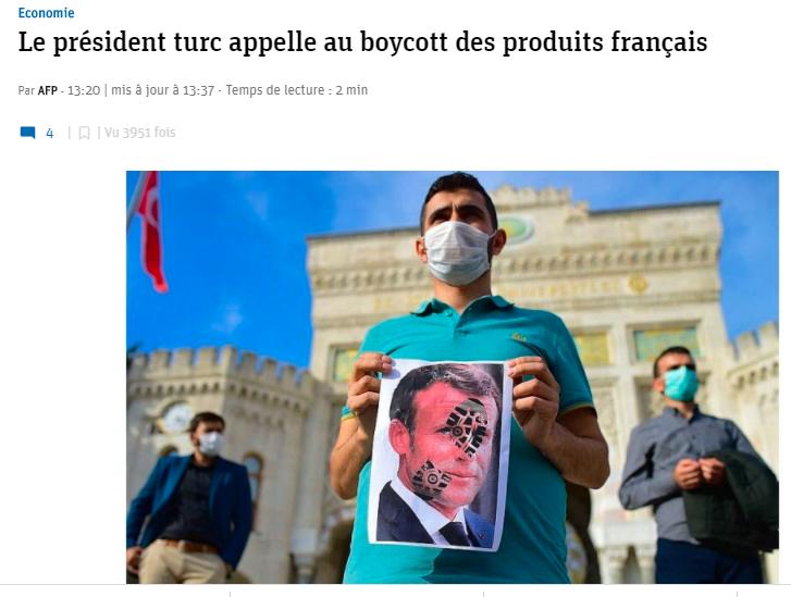 Cumhurbaşkanı Recep Tayyip Erdoğan, "Nasıl ki Fransa’da Türk markalı mal satın almayın deniyorsa, milletime sesleniyorum; sakın Fransız markaları satın almayın." dedi. Fransa basını Erdoğan'ın açıklamalarına geniş yer ayırdı.