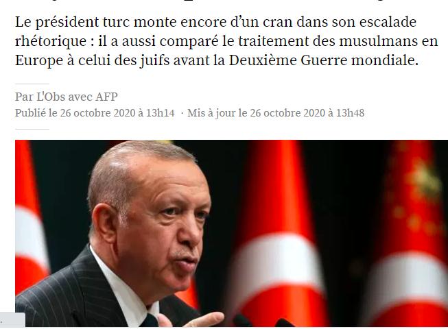 Lob`s sitesinde "Erdoğan Avrupa`daki Müslümanlara yönelik muameleyi İkinci Dünya Savaşı`ndan önceki Yahudilerinkiyle karşılaştırarak, Fransa ürünlerinin boykot edilmesini istediğini yazdı.
