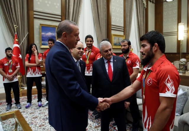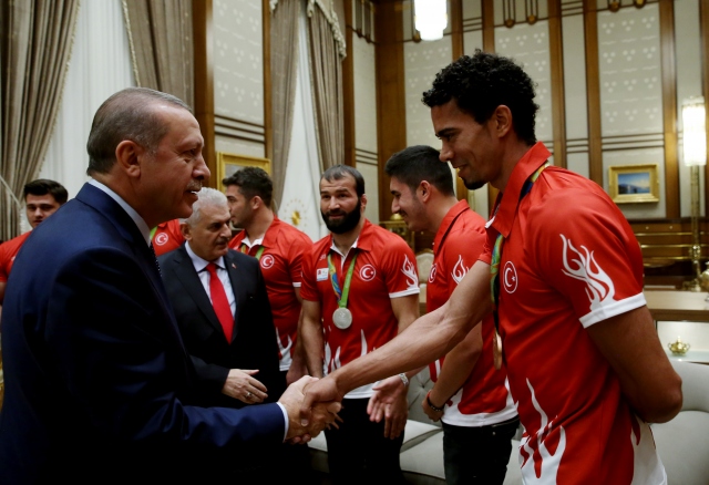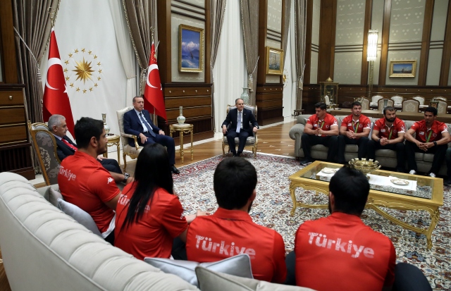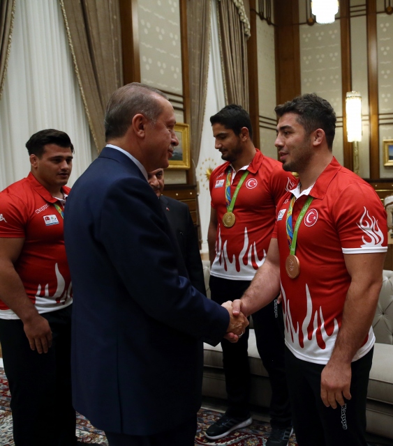 Cumhurbaşkanı Recep Tayyip Erdoğan, Cumhurbaşkanlığı Külliyesi'nde Rio Olimpiyat Oyunlarında madalya kazanan Türk sporcuları kabul etti.