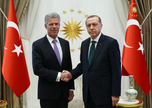 Cumhurbaşkanı Recep Tayyip Erdoğan, Lüksemburg`un Ankara Büyükelçisi Georges Faber ve beraberindeki heyeti kabul etti. Cumhurbaşkanlığı Külliyesi`nde gerçekleşen kabulde Büyükelçi Faber, Cumhurbaşkanı Erdoğan`a güven mektubunu sundu.