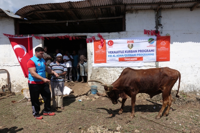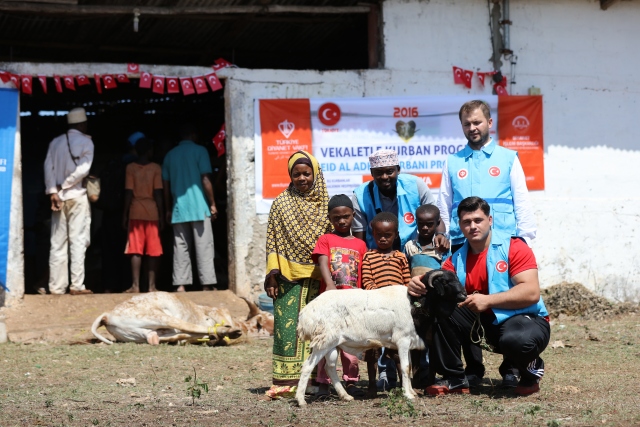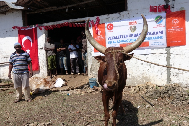 Cumhurbaşkanı Recep Tayyip Erdoğan'ın Türkiye Diyanet Vakfına (TDV) vekalet verdiği kurban Tanzanya’ya bağlı özerk Zanzibar Adası'nda kesildi. Mlli güreşçi Rıza Kayaalp'in de yer aldığı programda kesilen kurban Zanzibar'da ihtiyaç sahiplerine ulaştırıldı.