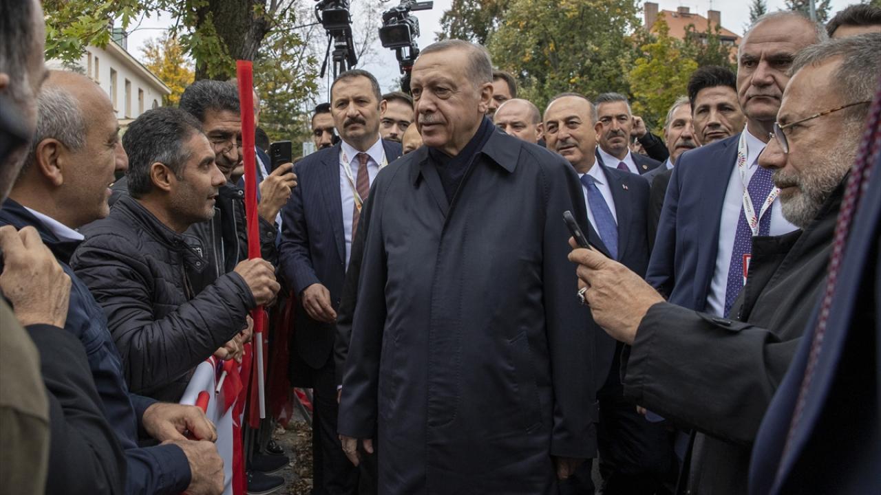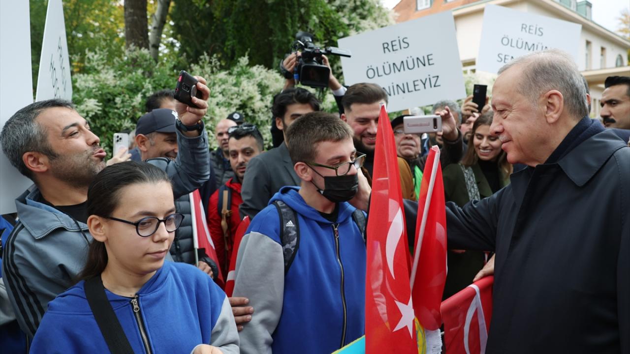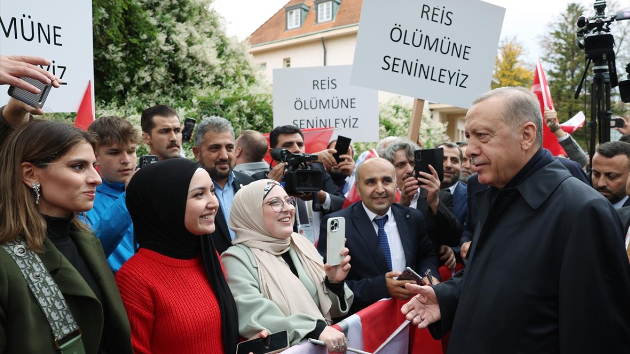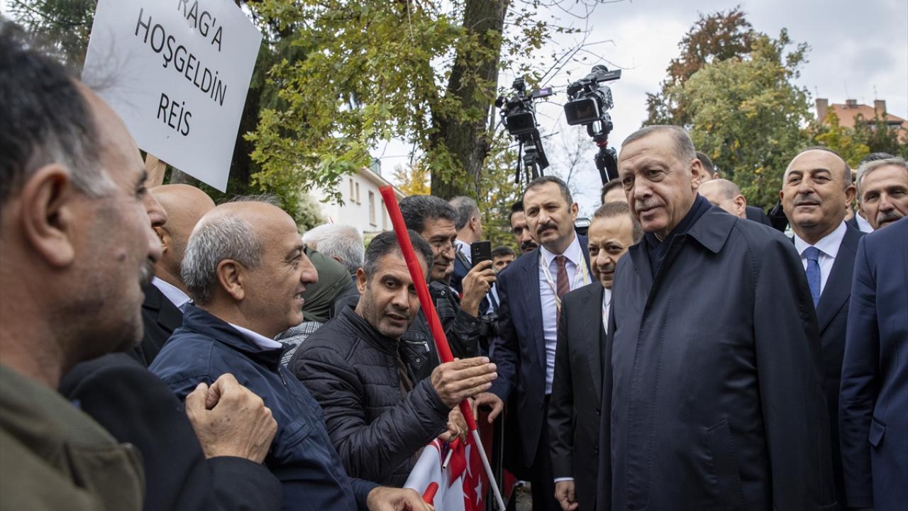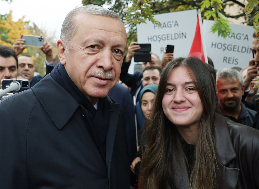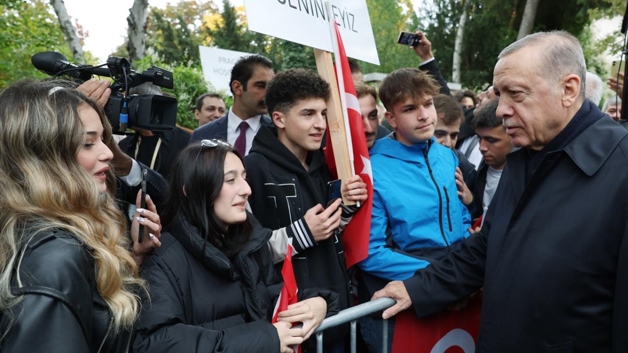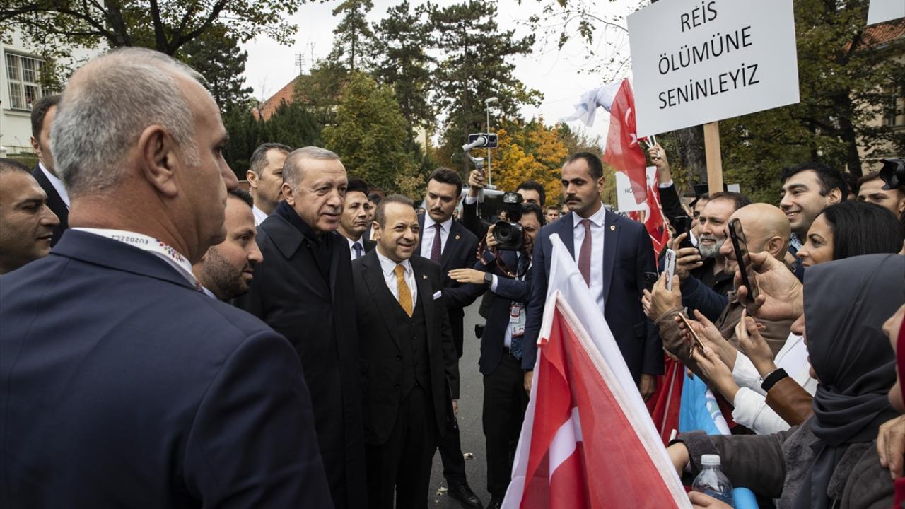 Prag`da ellerinde Türk bayraklarıyla kendisine sevgi gösterisinde bulunan gurbetçileri selamlayan Erdoğan, aracından inerek onlarla bir süre sohbet etti, fotoğraf çektirdi.