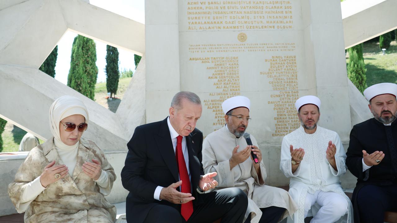 Cumhurbaşkanı Recep Tayyip Erdoğan ile eşi Emine Erdoğan, 15 Temmuz Şehitler Köprüsü'nde bulunan 15 Temmuz Şehitler Makamı'nı ziyaret etti. Cumhurbaşkanı Erdoğan ve eşi Emine Erdoğan, daha sonra Hafıza 15 Temmuz Müzesi önünde edilen duaya katıldı.