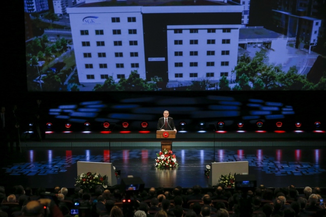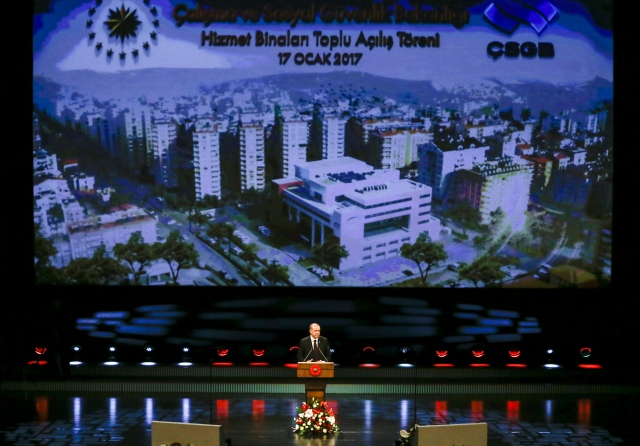 Cumhurbaşkanı Recep Tayyip Erdoğan, Cumhurbaşkanlığı Külliyesi'nde, Çalışma ve Sosyal Güvenlik Bakanlığınca yapımı tamamlanan SGK hizmet binalarının toplu açılış törenine katıldı.