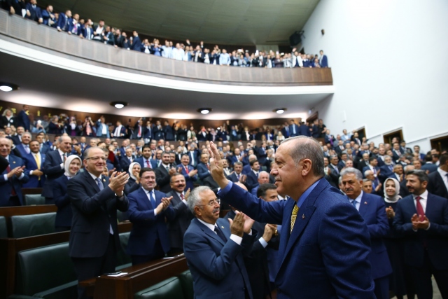 Cumhurbaşkanı ve AK Parti Genel Başkanı Recep Tayyip Erdoğan, partisinin grup toplantısına katılmak üzere TBMM'ye geldi. Erdoğan, TBMM Başbakan İsmail Kahraman, Başbakan Binali Yıldırım, bakanlar, milletvekilleri ve partililer tarafından karşılandı.