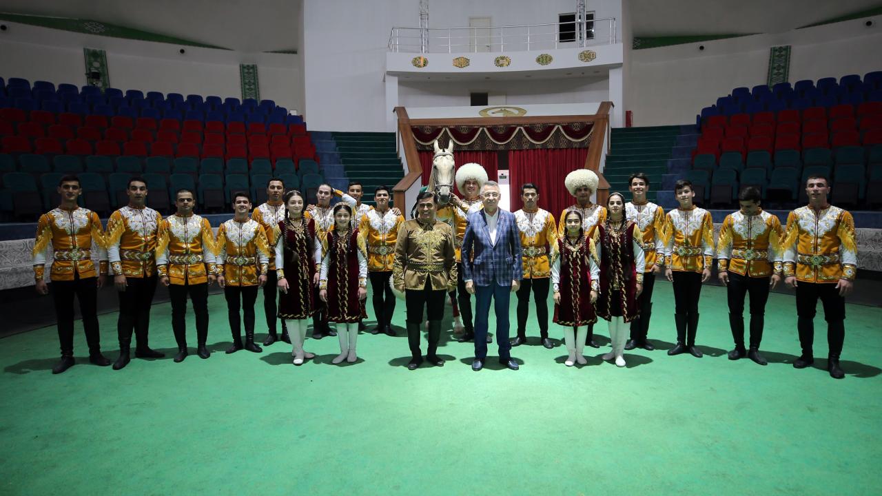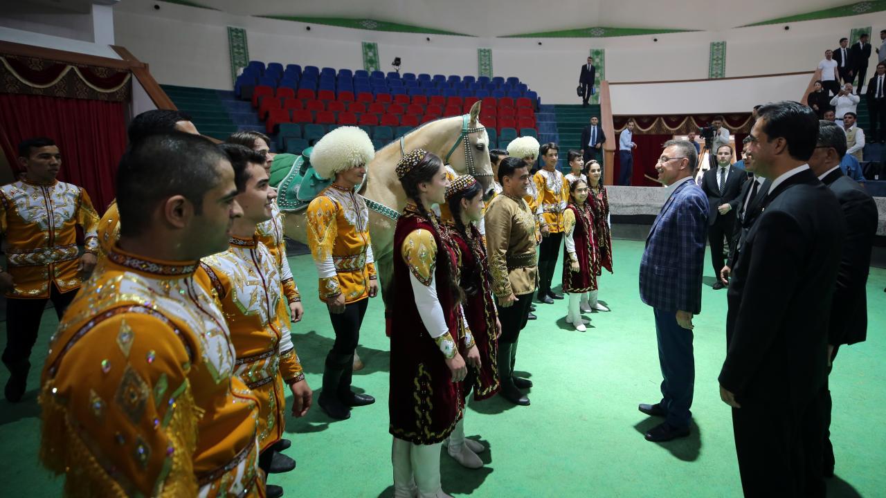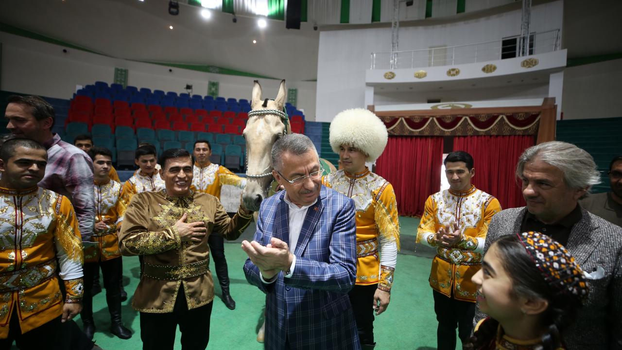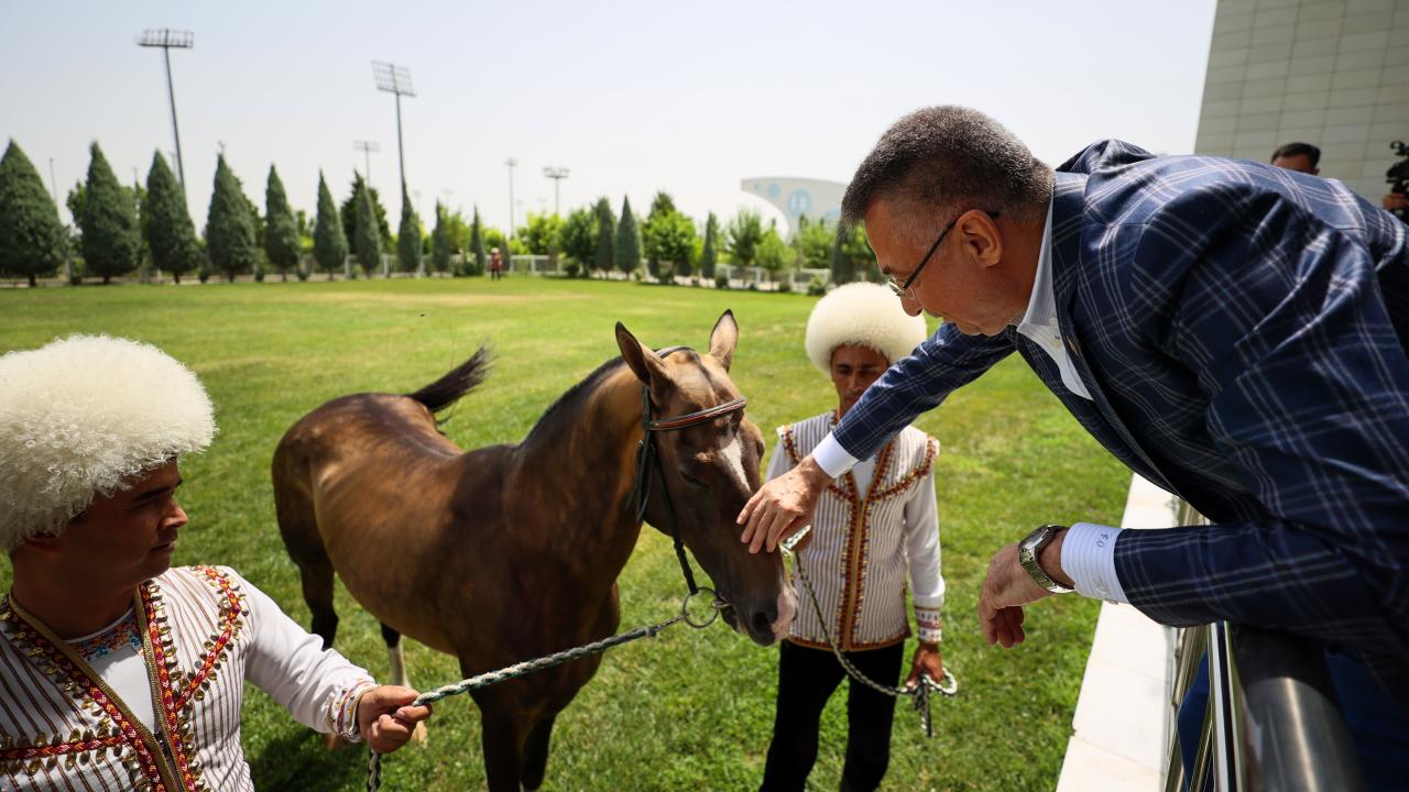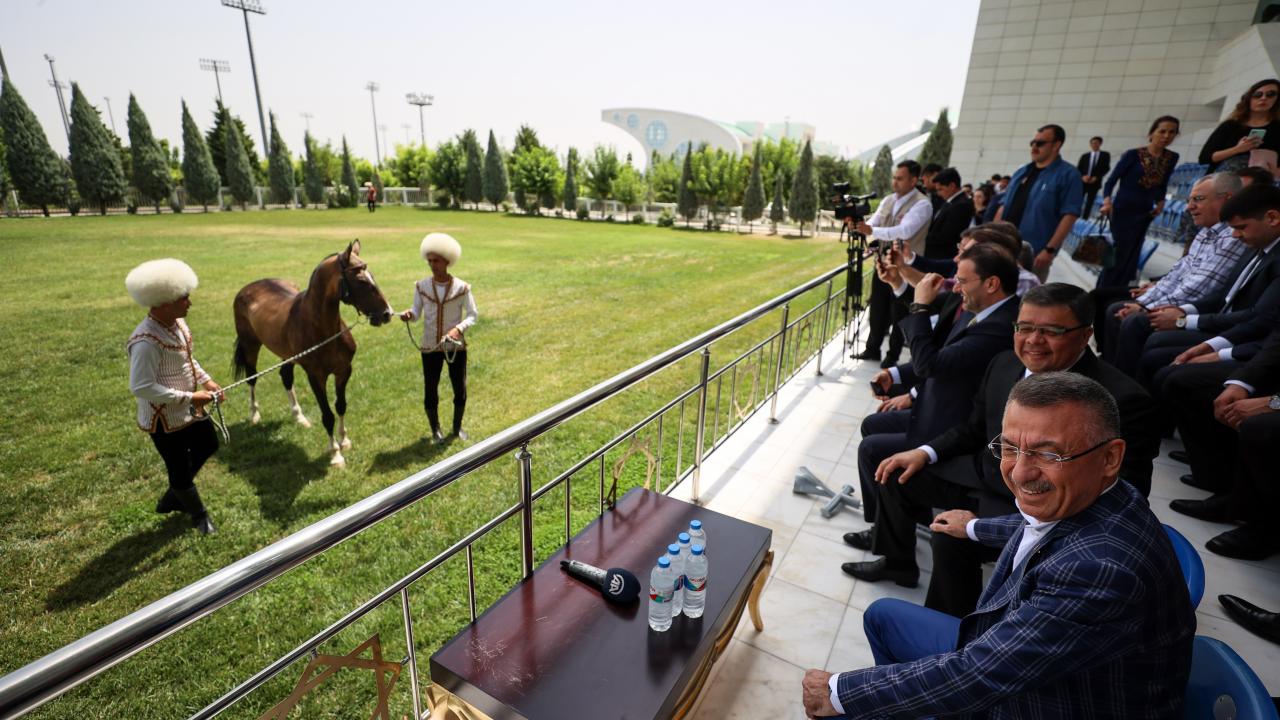 Cumhurbaşkanı Yardımcısı Fuat Oktay, Türkmenistan Ahıl Teke atı gösterisini izledi, Türkmenistan halısı müzesini ziyaret etti.