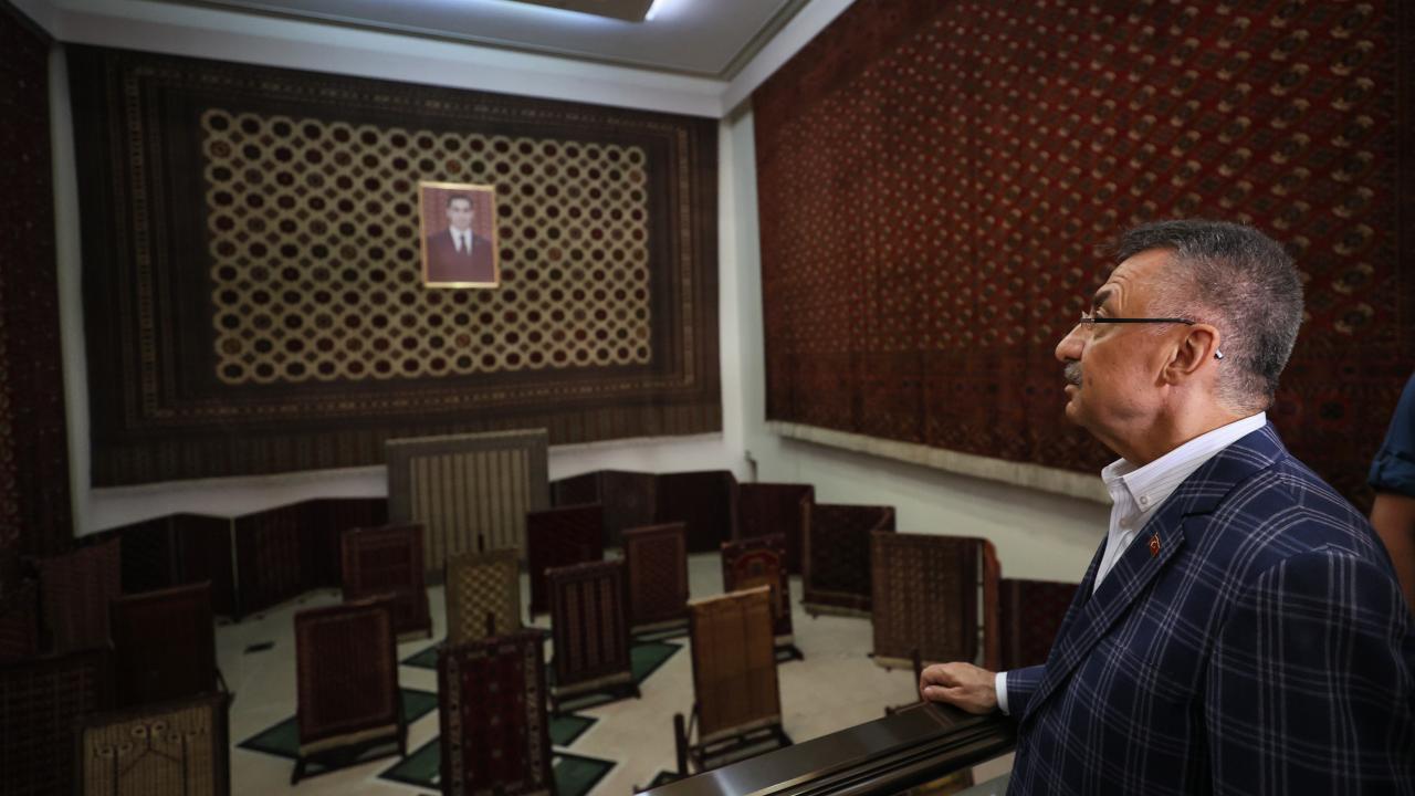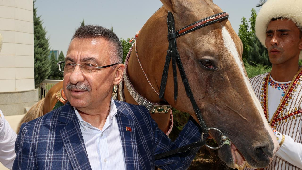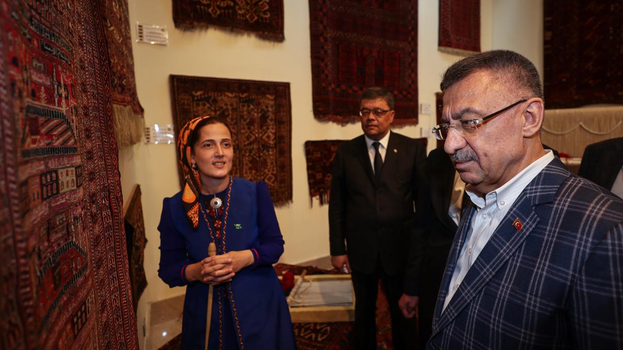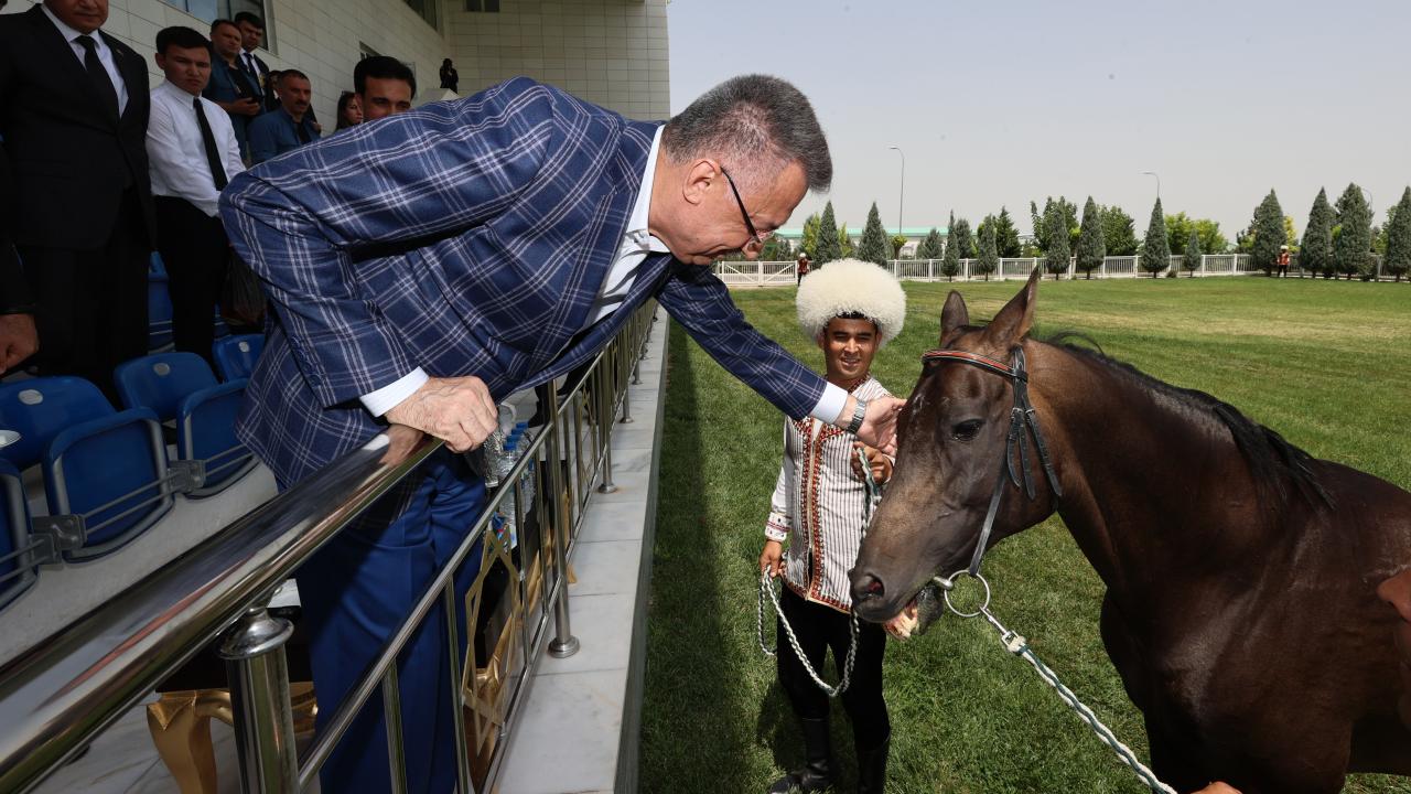 Cumhurbaşkanı Yardımcısı Fuat Oktay, Türkmenistan Ahıl Teke atı gösterisini izledi, Türkmenistan halısı müzesini ziyaret etti.