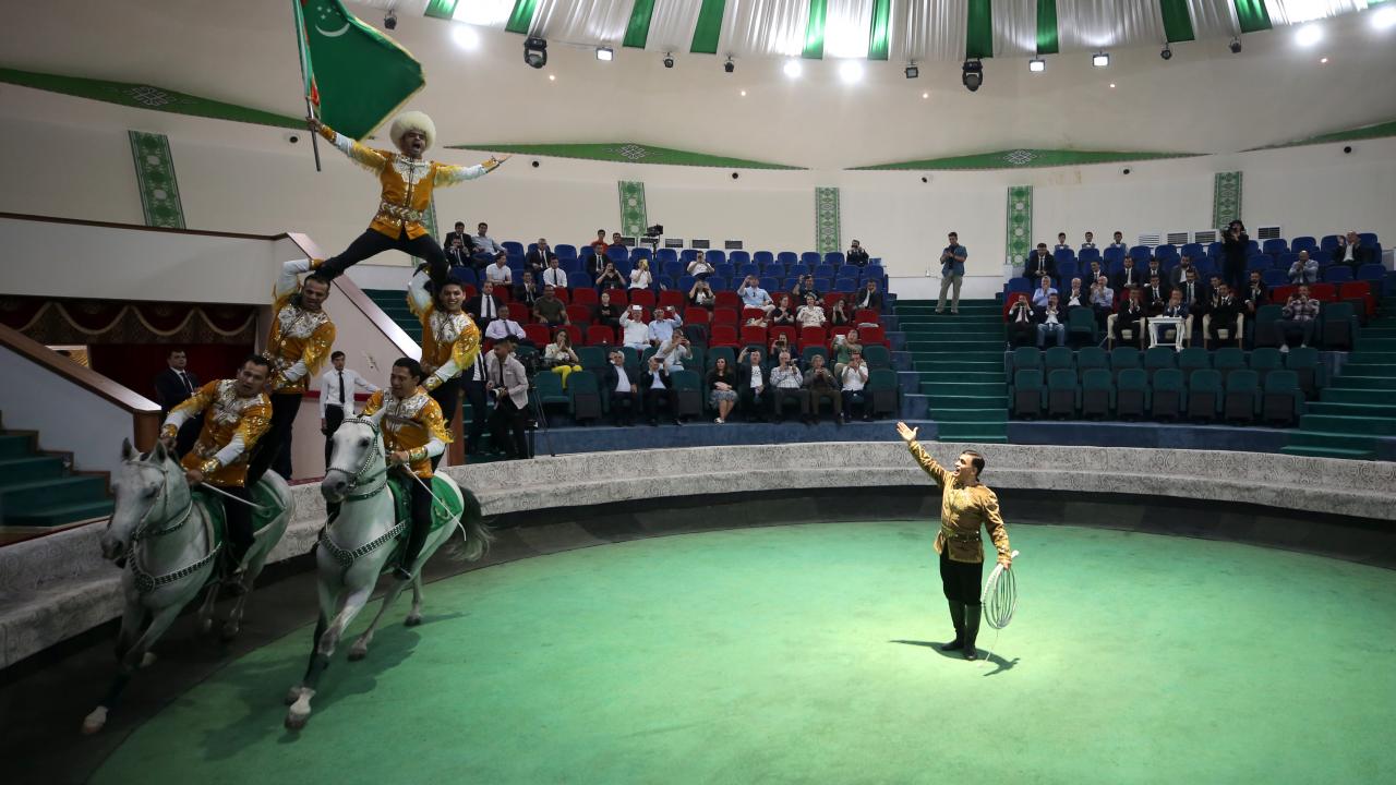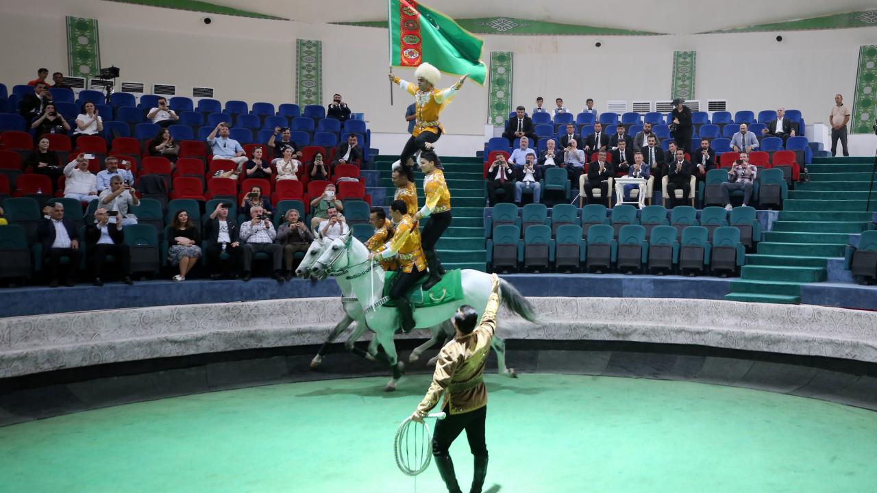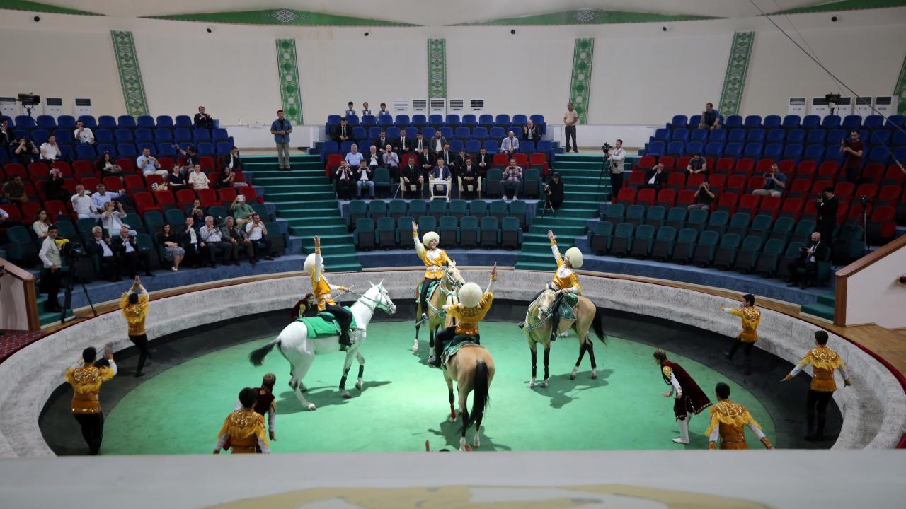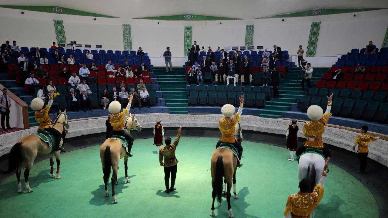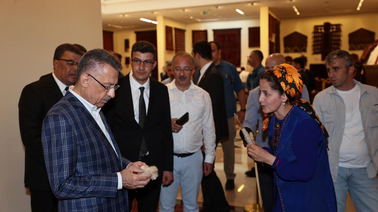 Cumhurbaşkanı Yardımcısı Fuat Oktay, Türkmenistan Ahıl Teke atı gösterisini izledi, Türkmenistan halısı müzesini ziyaret etti.