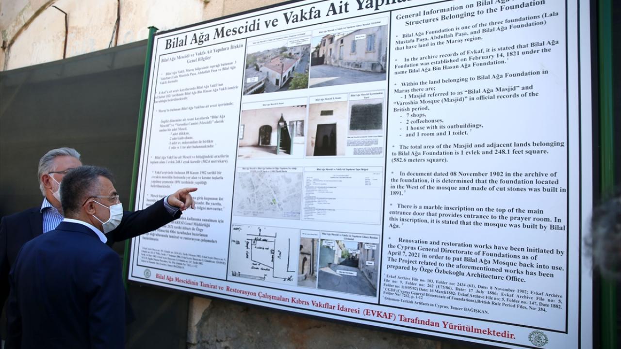 Cumhurbaşkanı Erdoğan`ın ziyareti sırasında 20 Temmuz`da hizmete girmesi beklenen Bilal Ağa Mescidi`ndeki çalışmaları da yerinde inceleyen Oktay`a, Maraş ziyareti sırasında, KKTC Başbakanı Ersan Saner, Bayındırlık ve Ulaştırma Bakanı Resmiye Eroğlu Canaltay, Türkiye`nin Lefkoşa Büyükelçisi Ali Murat Başçeri, Gazimağusa Belediye Başkanı İsmail Arter, Kıbrıs Vakıflar İdaresi (EVKAF) Genel Müdürü İbrahim Benter eşlik etti.