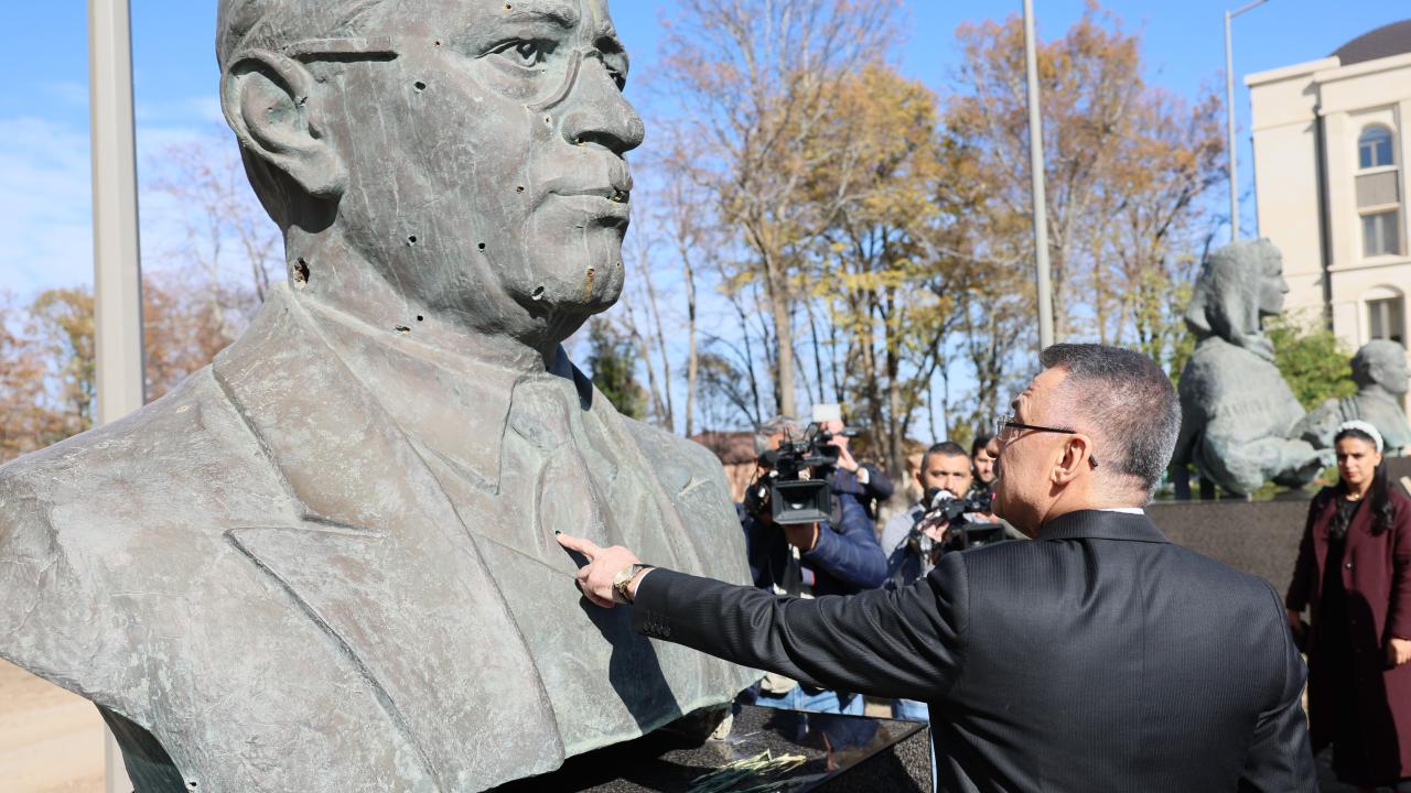 Şuşa Valiliği önünde heykelleri bulunan "Bülbül" ismiyle tanınan Azerbaycanlı Tenor Murtaza Memmedov, 19. yüzyıl Azerbaycan`ında Fuzuli mektebinin en tanınmış temsilcisi olarak kabul edilen Hurşidbanu Natevan ve Azeri müzisyen Üzeyir Hacıbeyov hakkında bilgi alan Oktay, heykellerin üzerinde, Ermenistan askerlerinin açtığı ateş sonucunda oluşan mermi izlerini inceledi.