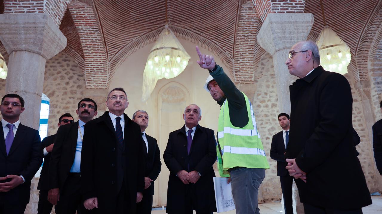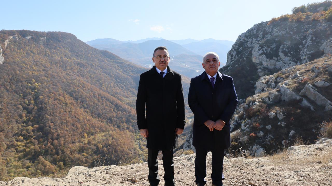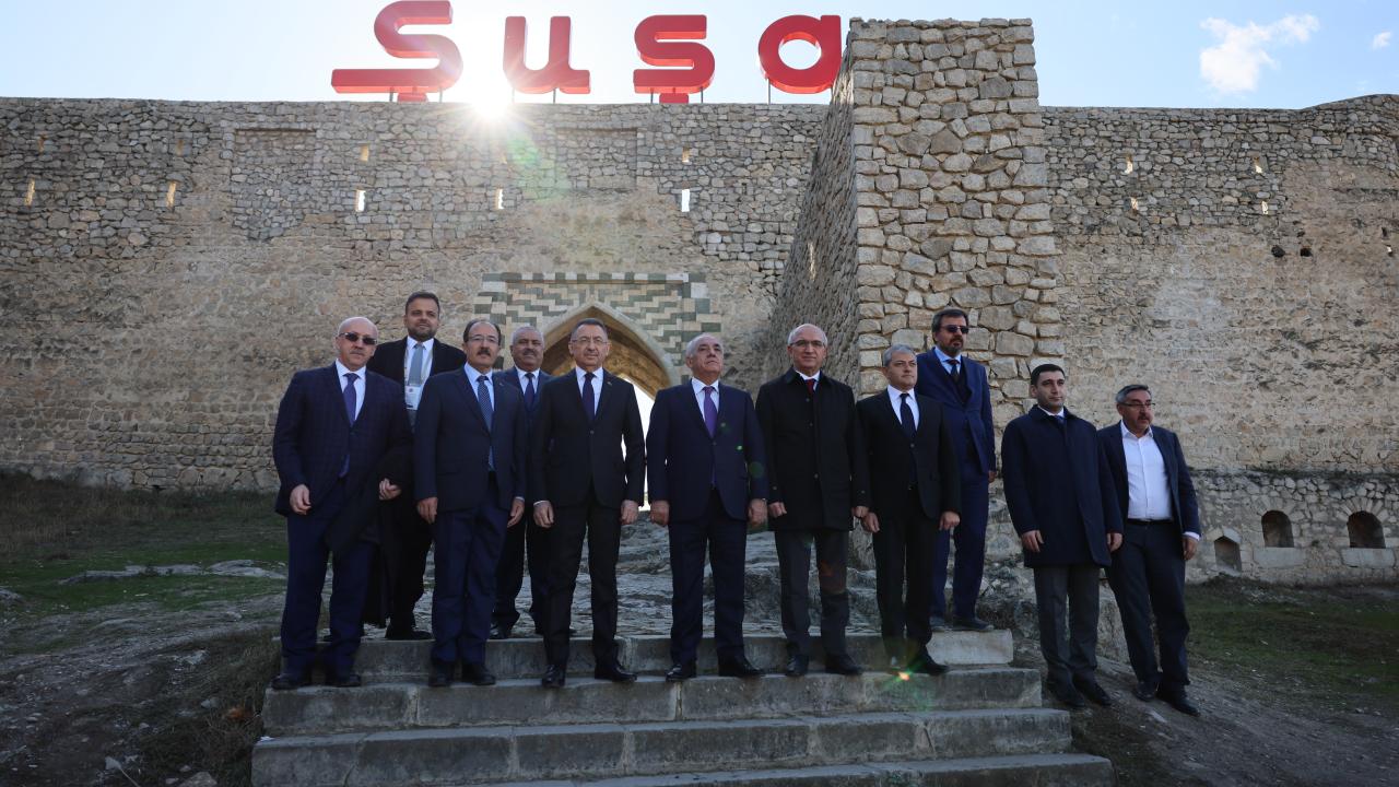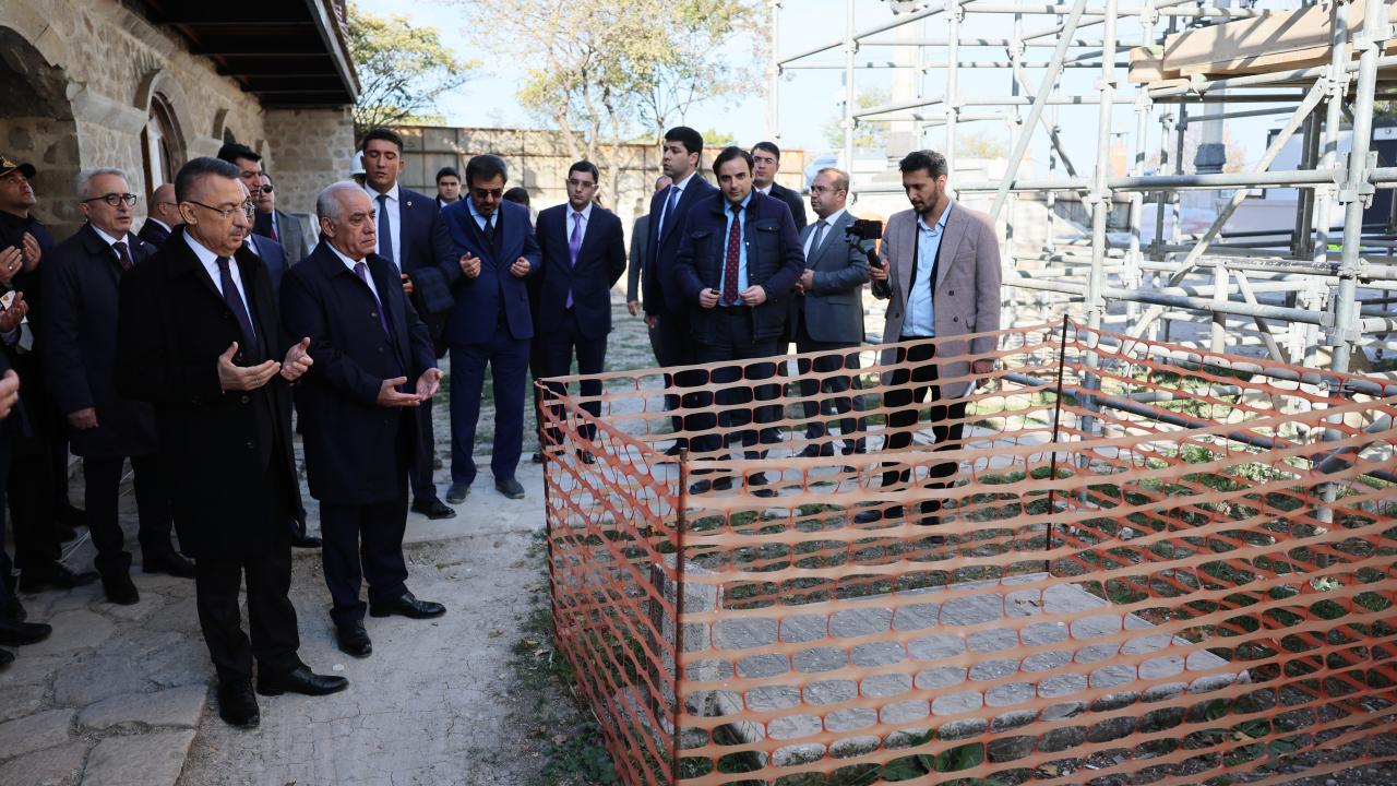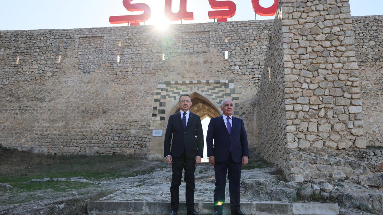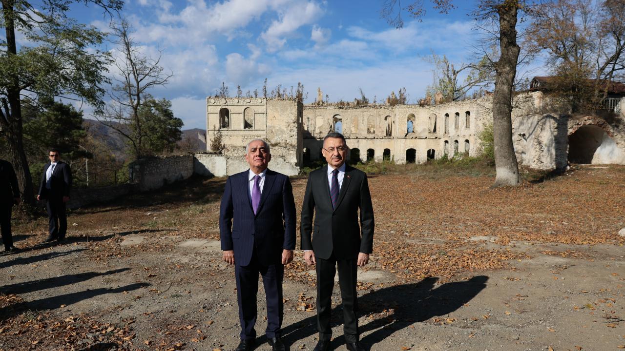 Şuşa`daki tarihi mekanları ve kültür varlıklarını ziyaret eden Oktay`a, Asadov ile Azerbaycan Cumhurbaşkanı Şuşa Özel Temsilcisi Aydın Kerimov bilgi verdi.