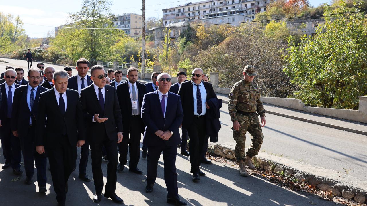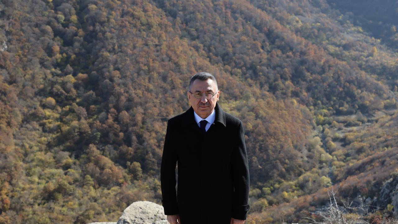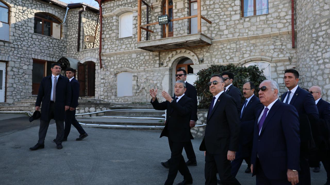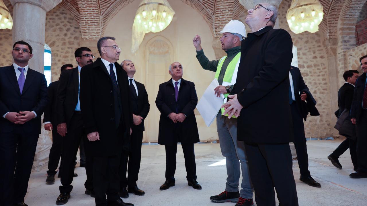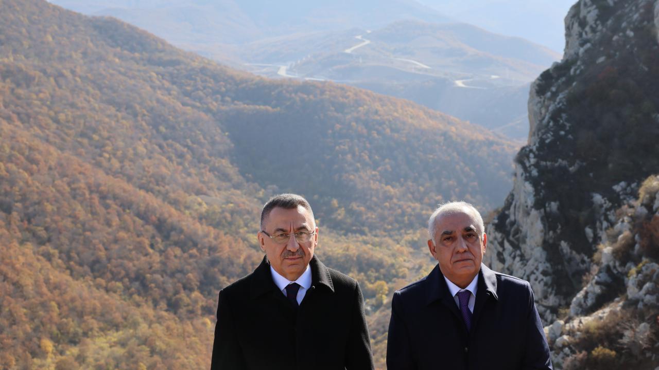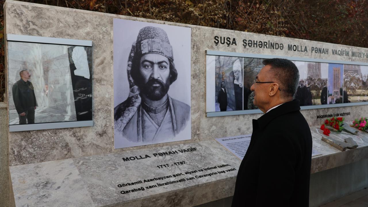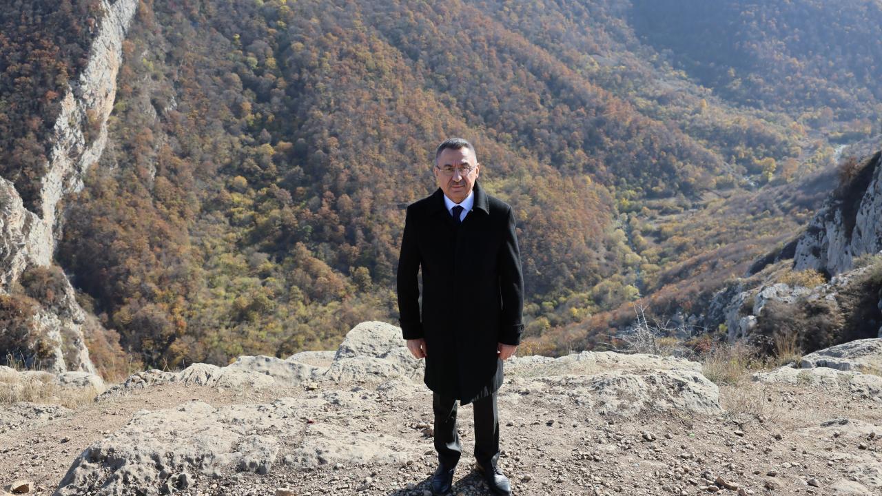 Şuşa`daki tarihi mekanları ve kültür varlıklarını ziyaret eden Oktay`a, Asadov ile Azerbaycan Cumhurbaşkanı Şuşa Özel Temsilcisi Aydın Kerimov bilgi verdi.