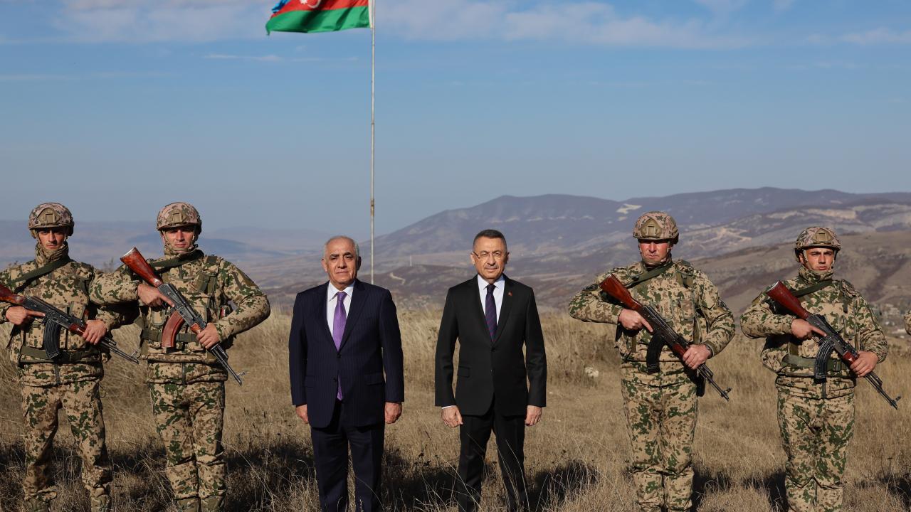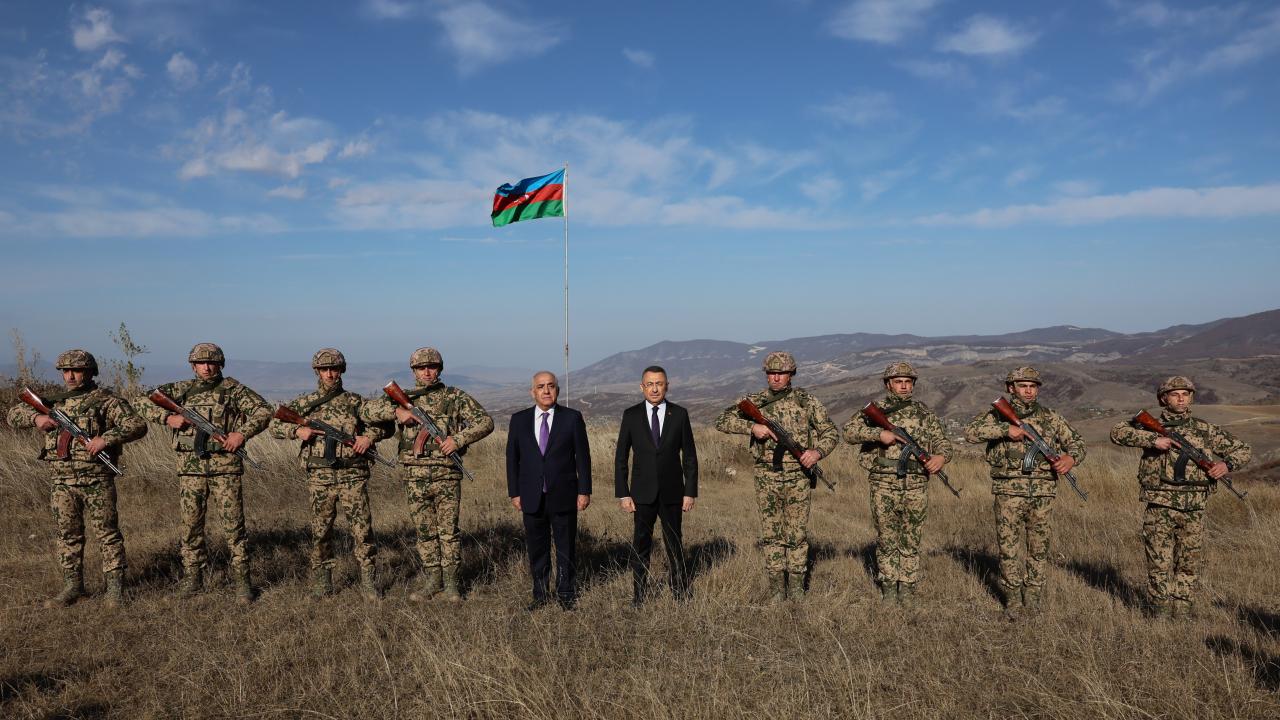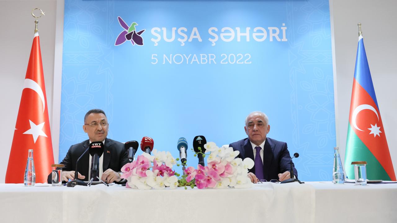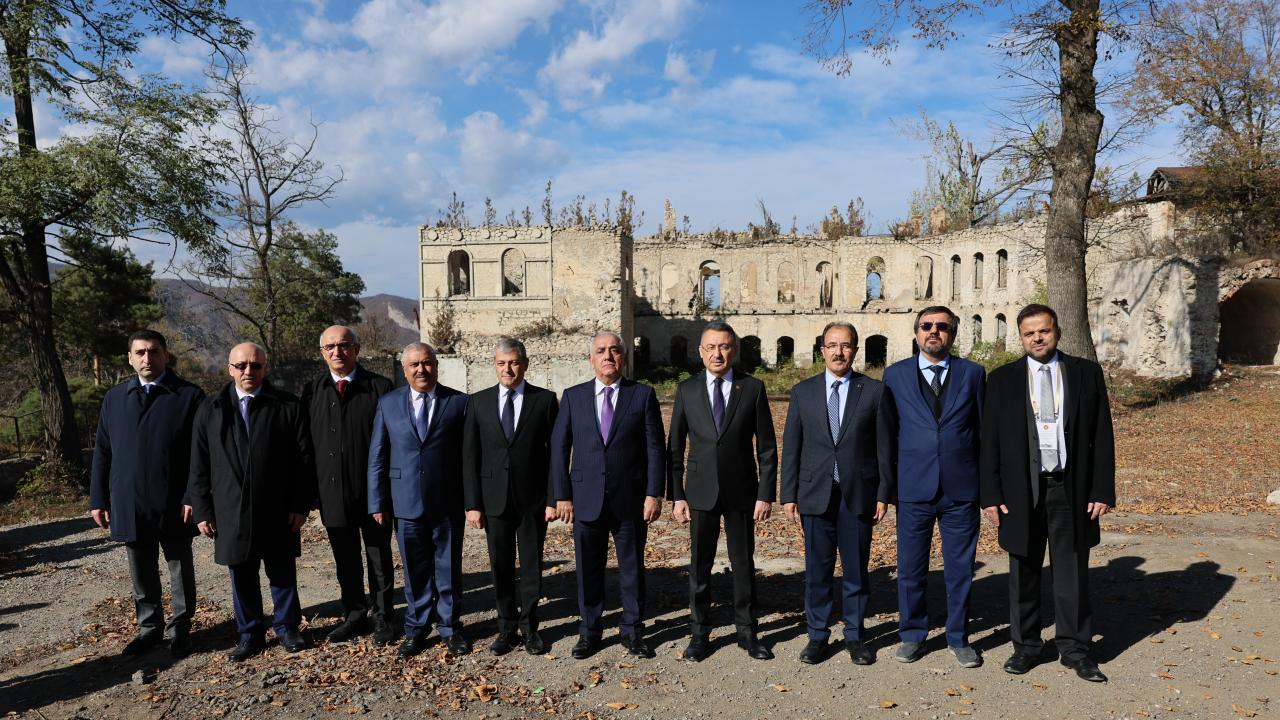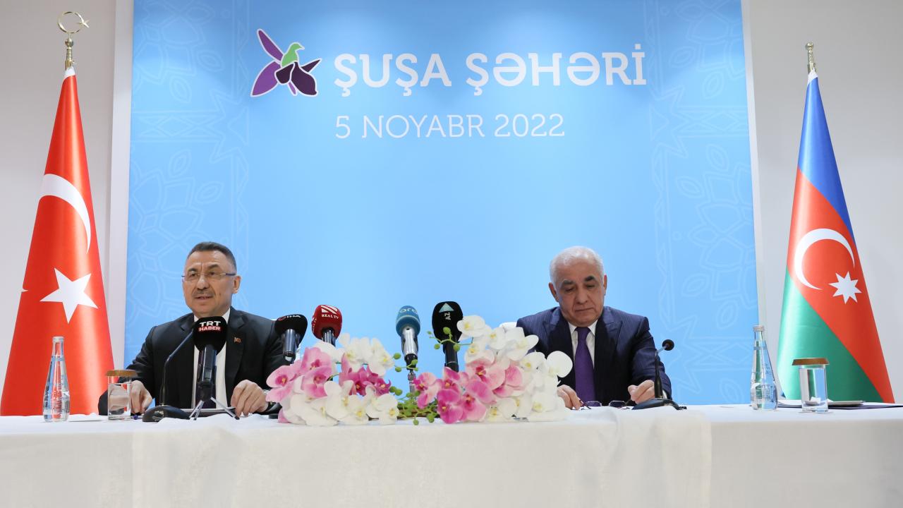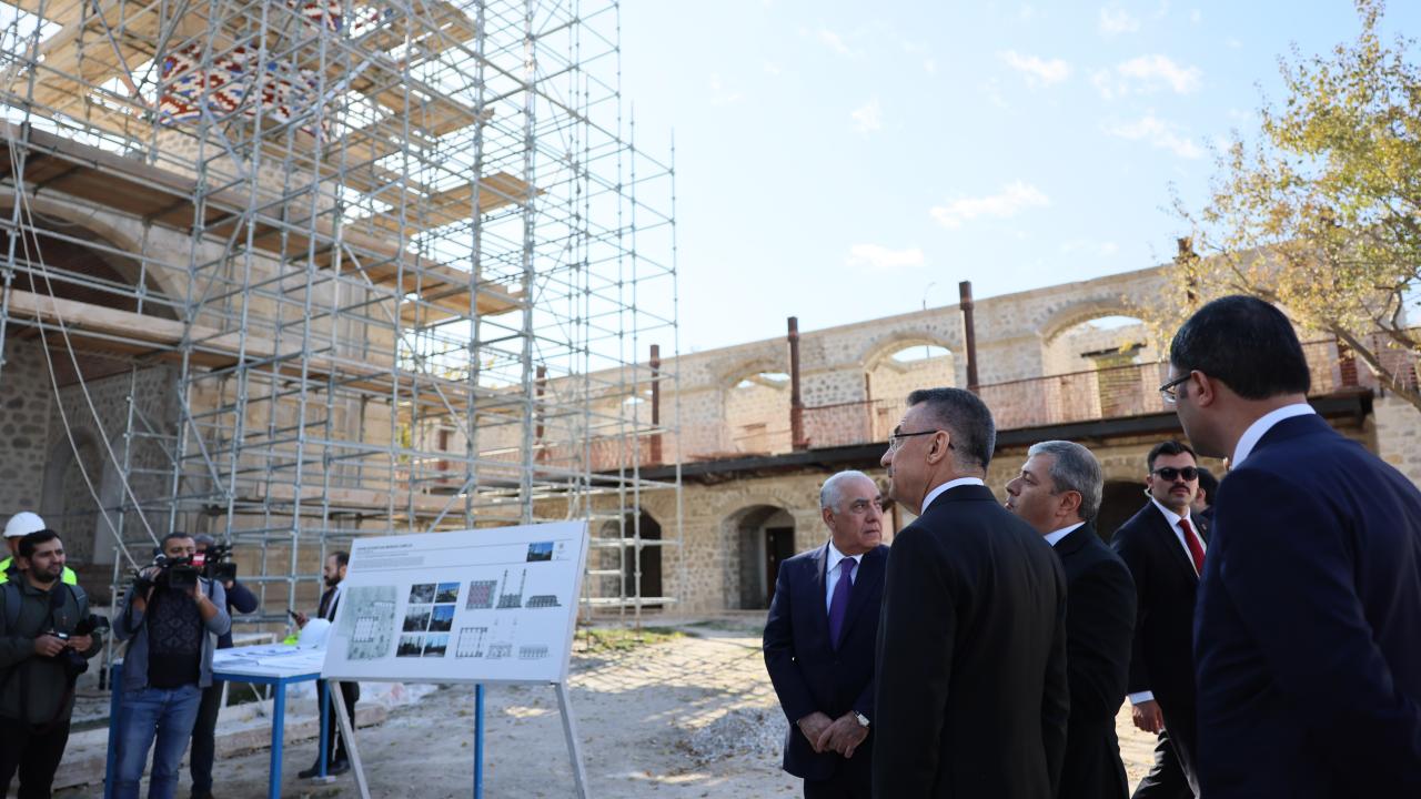 Şuşa`daki tarihi mekanları ve kültür varlıklarını ziyaret eden Oktay`a, Asadov ile Azerbaycan Cumhurbaşkanı Şuşa Özel Temsilcisi Aydın Kerimov bilgi verdi.