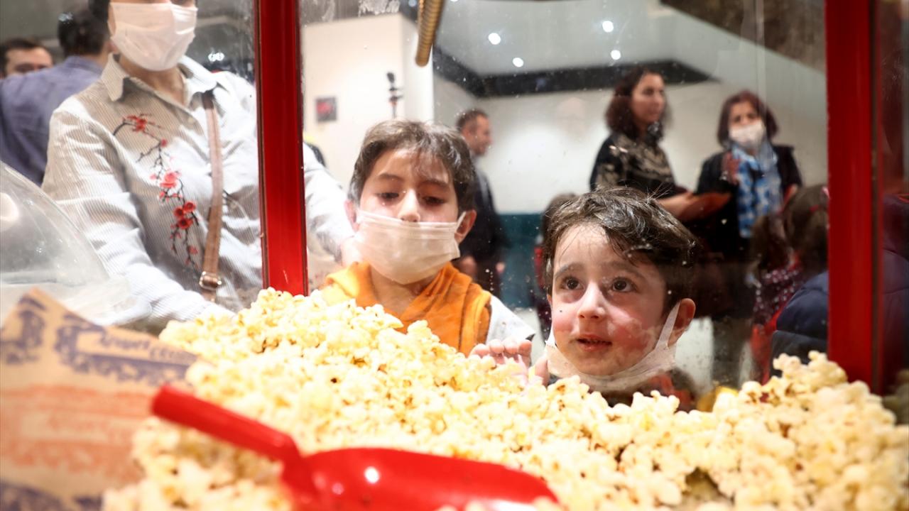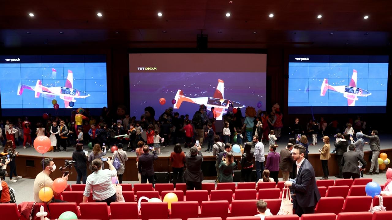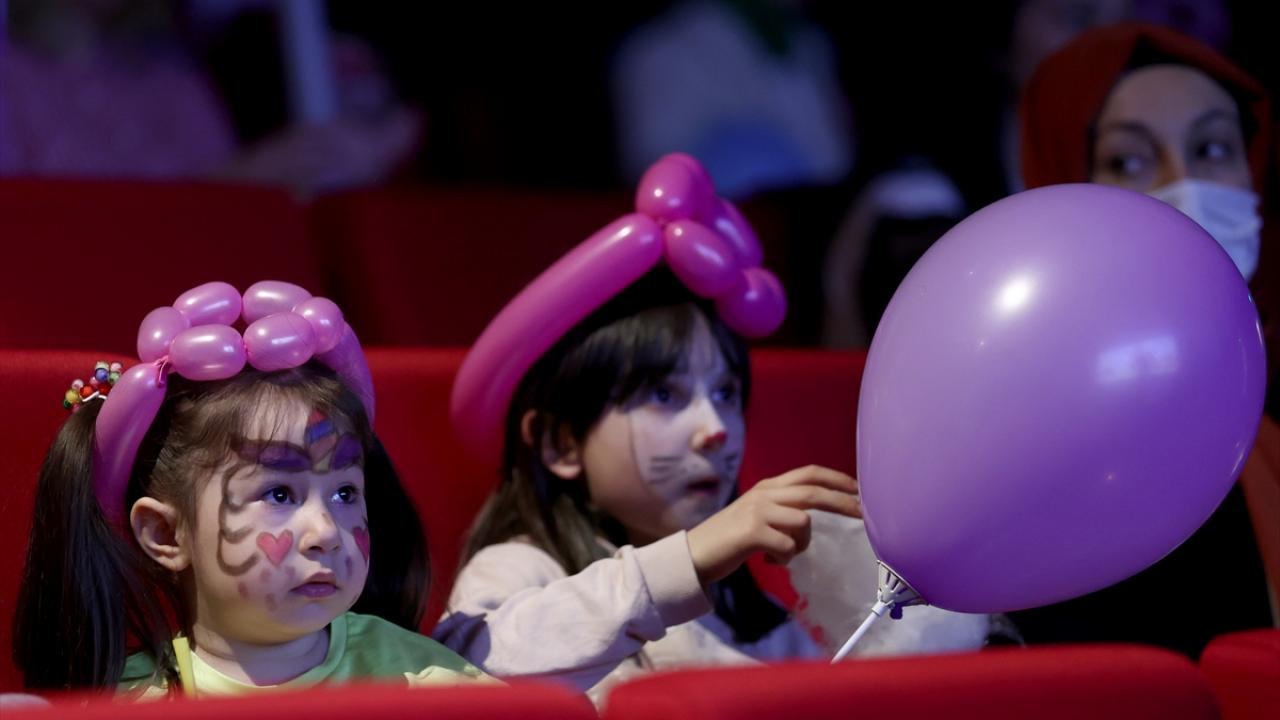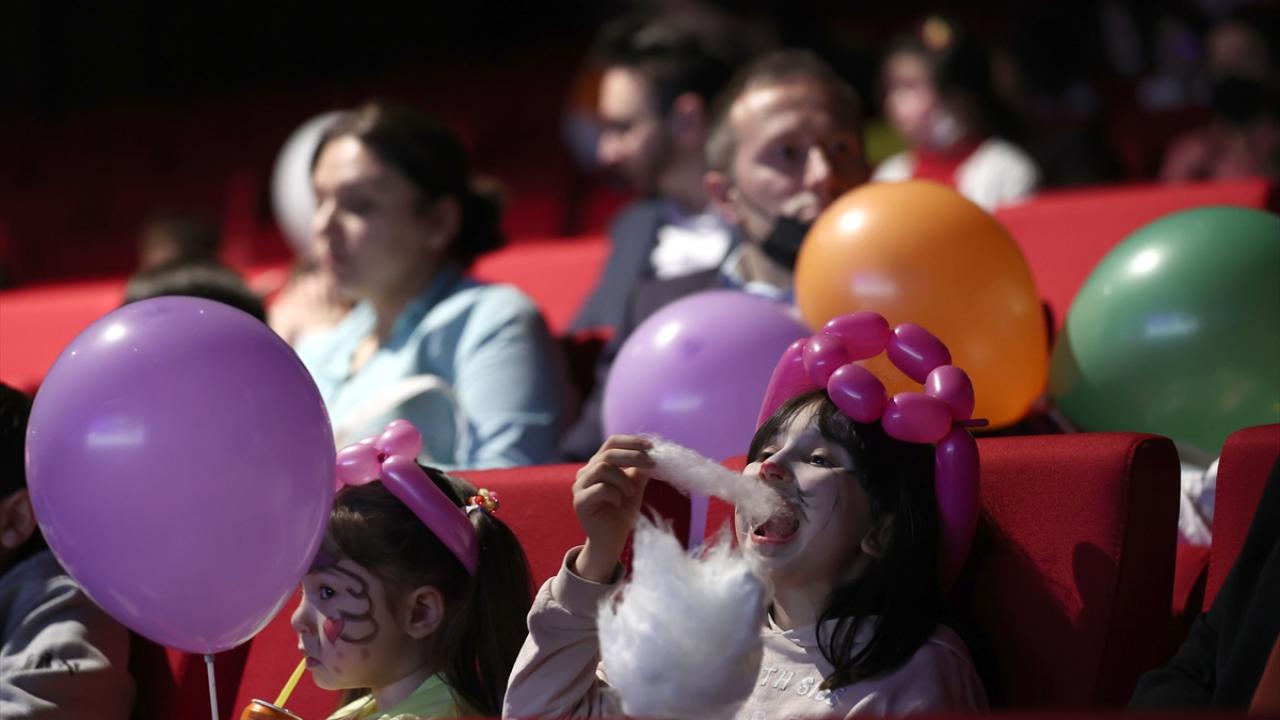 Çocukların Türk bayrakları ile karşılandığı etkinlikte, TRT Çocuk tarafından hazırlanan Aslan Hürkuş Kayıp Elmas sinema gösterimi yapıldı.