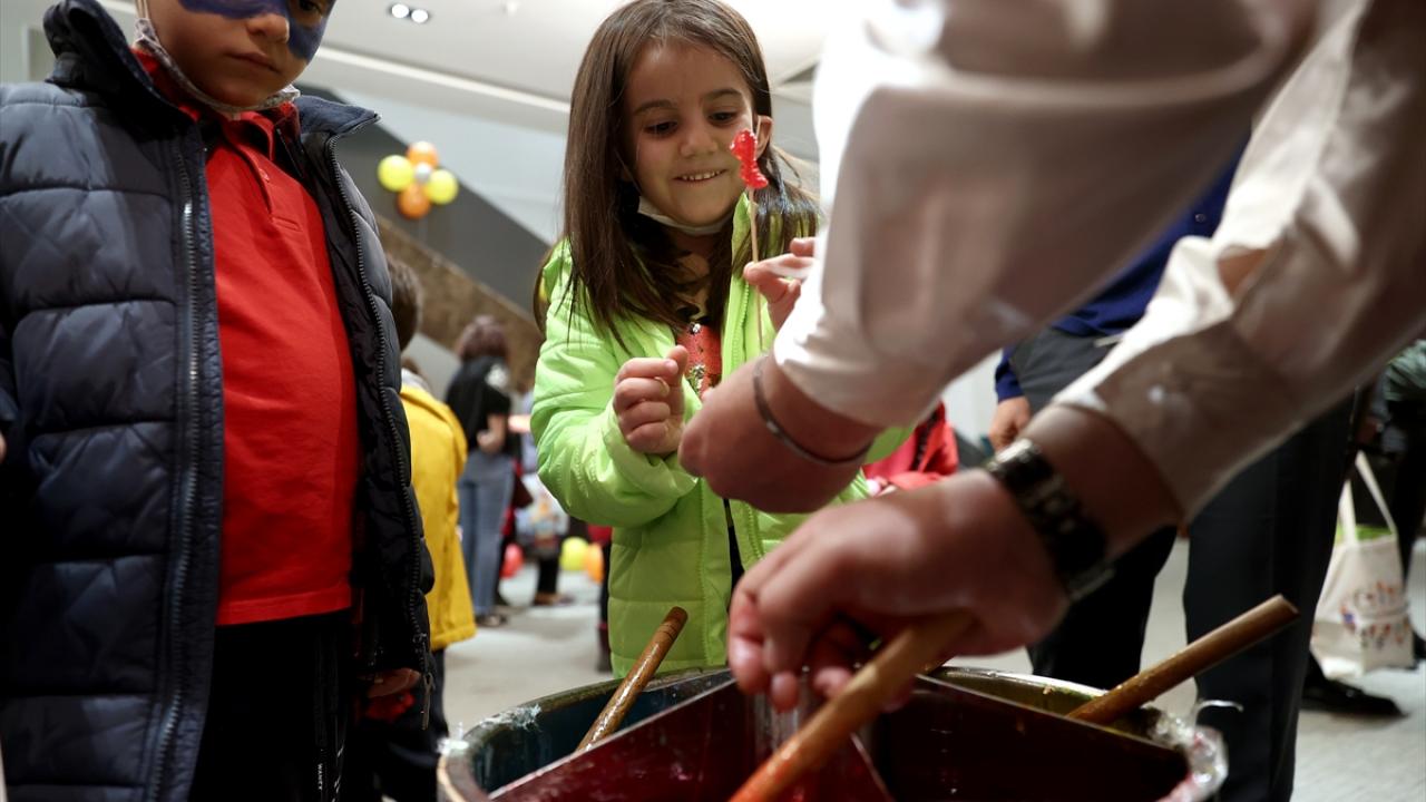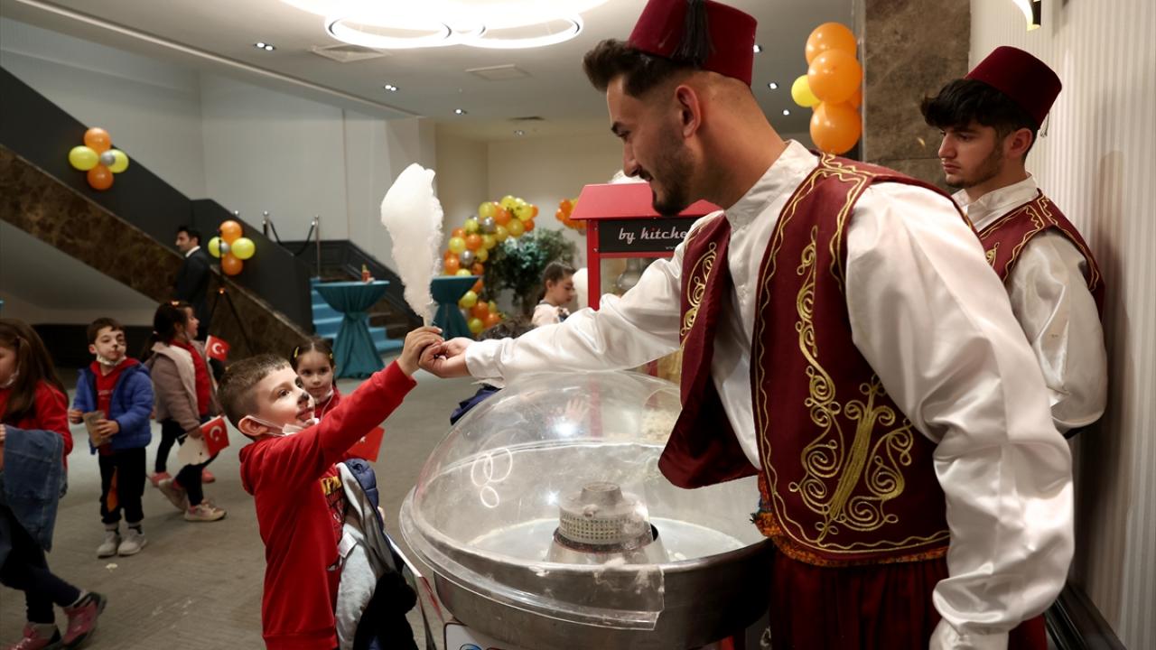 Çocukların sevdiği renkli macun, pamuk şeker, patlamış mısır gibi ikramların yapıldığı ve çeşitli hediyelerin dağıtıldığı etkinlikte, 23 Nisan ve çocuk şarkıları söylendi.