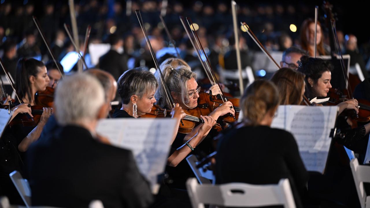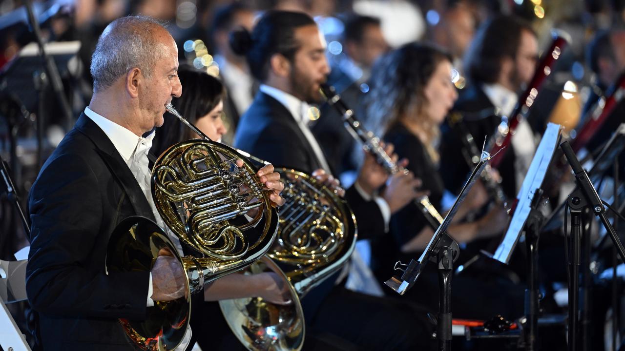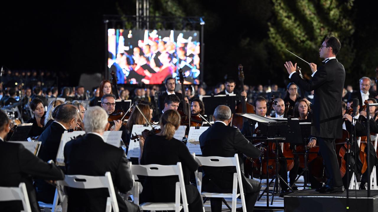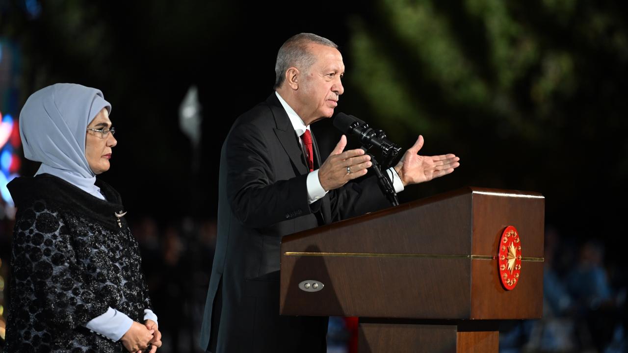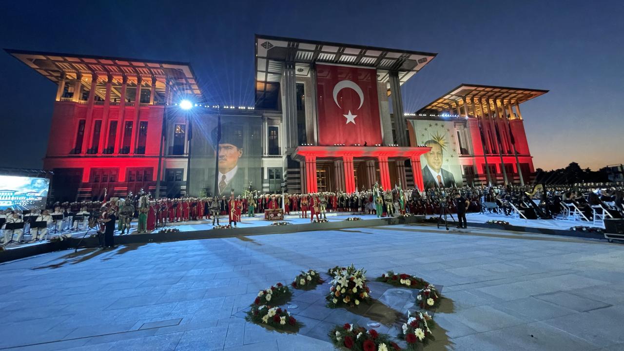 Cumhurbaşkanı Recep Tayyip Erdoğan ile eşi Emine Erdoğan, Cumhurbaşkanlığı Külliyesi'nde düzenlenen 30 Ağustos Zafer Bayramı Özel Konseri ve 100. Yıl Marşı Tanıtım Programına katıldı. Cumhurbaşkanı Erdoğan, konser öncesi konuşma yaptı.