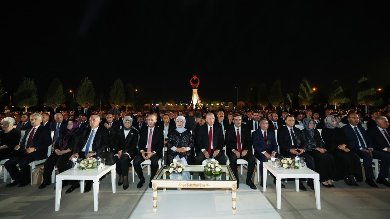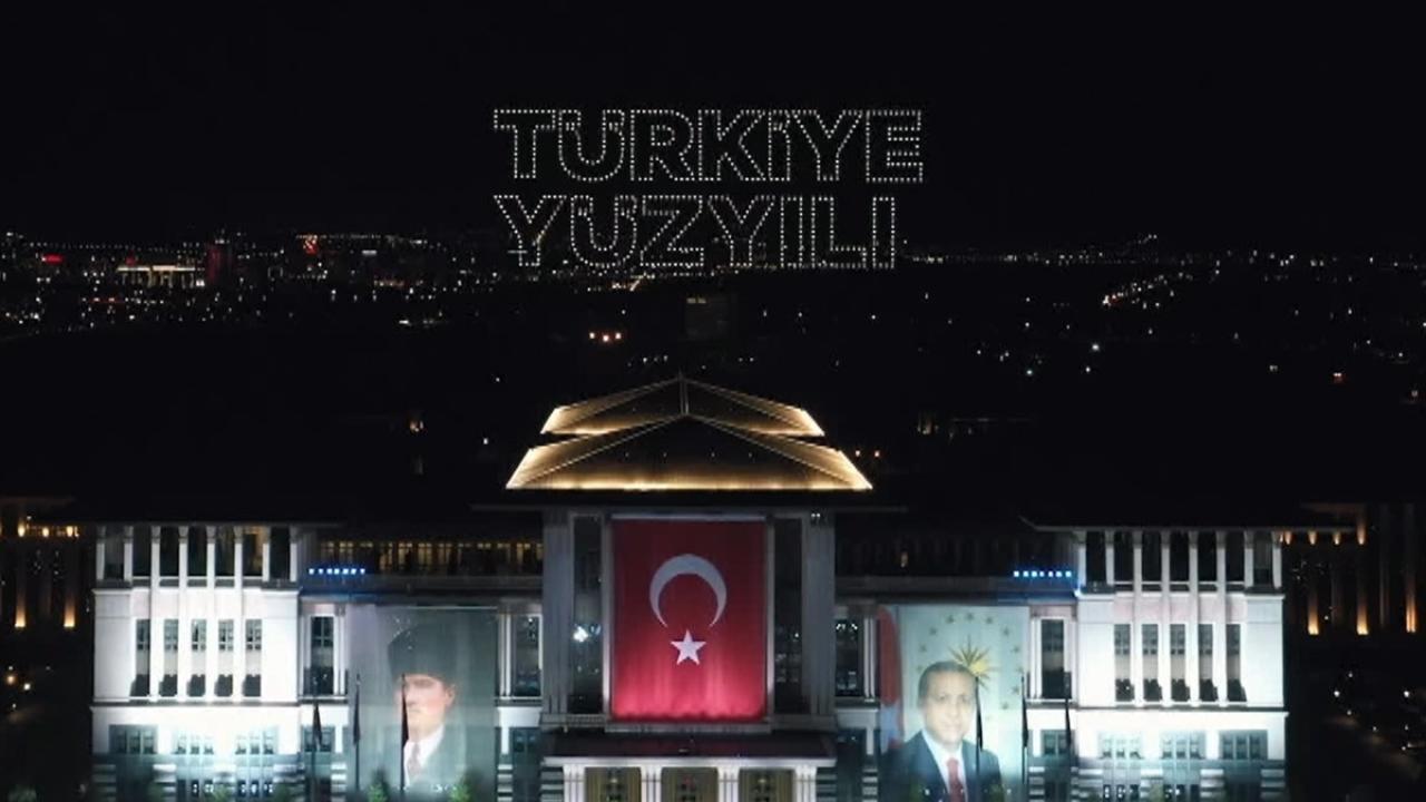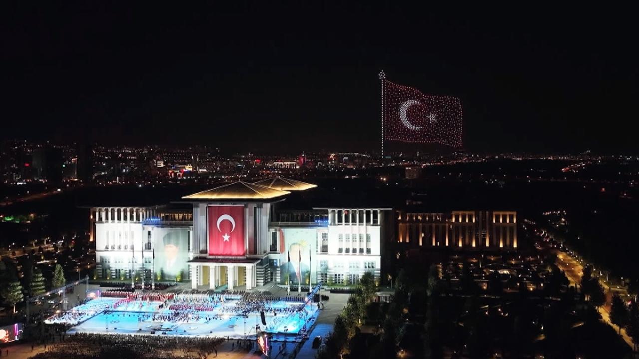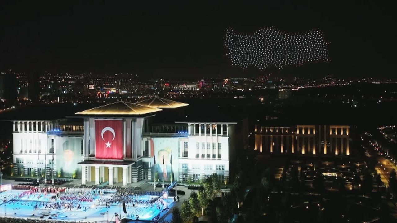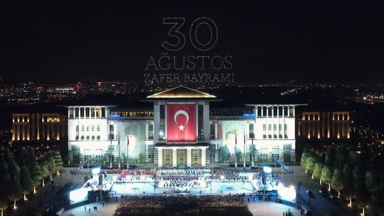 Cumhurbaşkanlığı Külliyesi'nde 30 Ağustos Zafer Bayramı kutlamaları kapsamında insansız hava aracı (İHA) ile ışık gösterisi yapıldı.