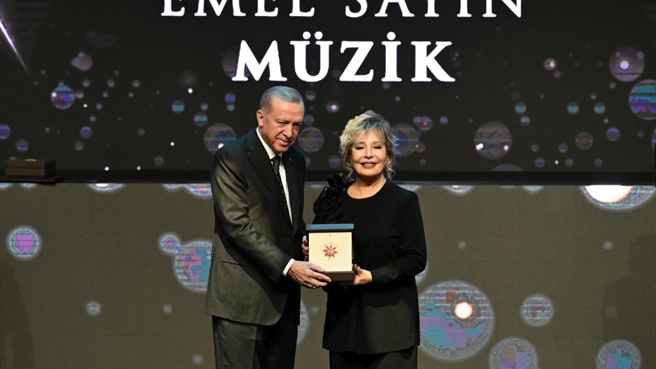 Cumhurbaşkanı Erdoğan, programda müzik dalındaki ödülü, Emel Sayın`a takdim etti.