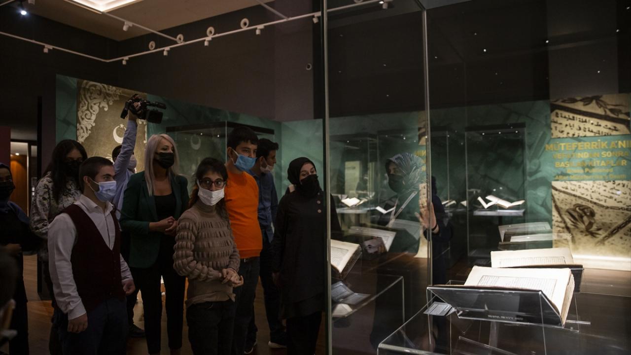 Osmanlı devletinde ilk basımevini kuran İbrahim Müteferrika`nın bastığı ve çevirdiği eserlerin sergilendiği "Müteferrika Sergisi`21"i de ziyaret eden otizmli çocuklara eserler hakkında bilgiler verildi.