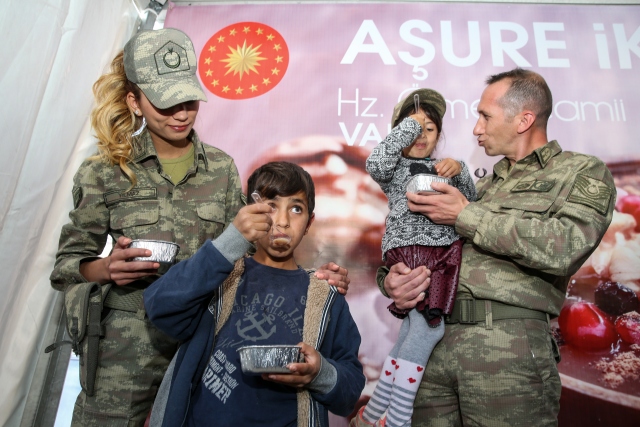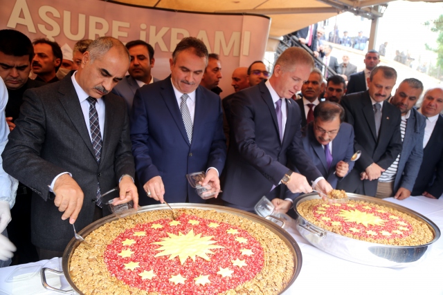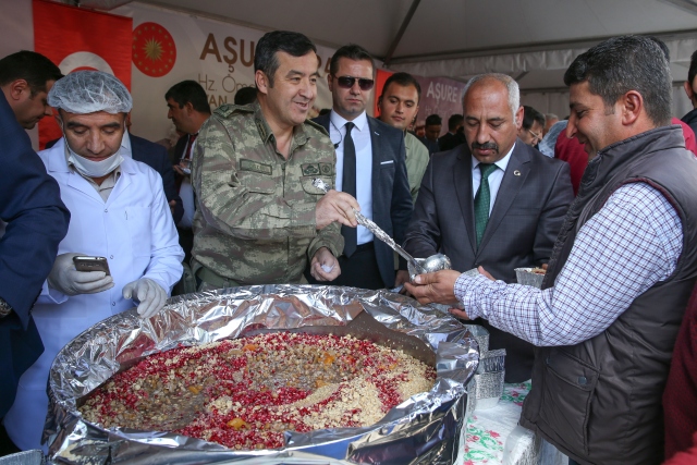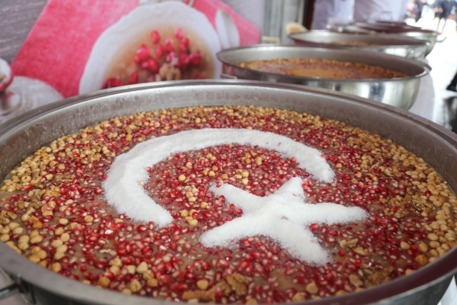 Antalya'da, muharrem ayı dolayısıyla Cumhurbaşkanlığı himayesinde 2 bin kişiye aşure dağıtıldı.