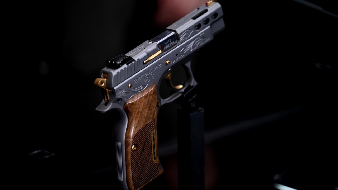"Cumhuriyetimizin 100. yılına atfen üretilen SAR 2023 de burada sergileniyor." diyen Özyılmaz, tabancanın özel bir seri olduğunu ve yalnızca 2023 adet üretildiğini bildirdi.