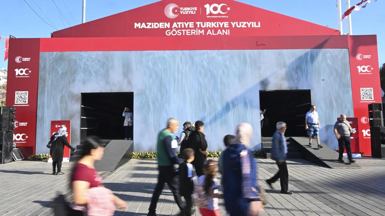 Cumhurbaşkanlığı İletişim Başkanlığınca, Cumhuriyet'in 100. yılı etkinlikleri kapsamında Taksim Meydanı'na kurulan 'Türkiye Yüzyılı Monolit Kuleleri'nden özel video gösterimleri gerçekleştirildi.